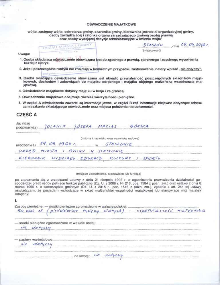 Osoba składająca oświadczenie obowiązana jest do zgodnego z prawdą, starannego i zupełnego wypełnienia
