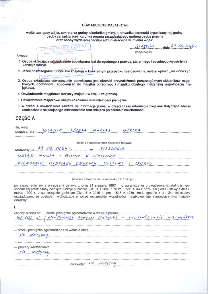 4. Oświadczenie majątkowe dotyczy majątku w kraju i za granicą.