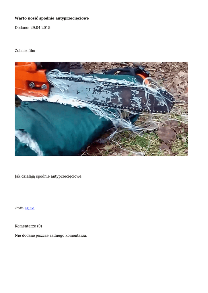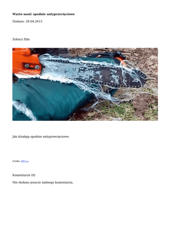 Warto nosić spodnie antyprzecięciowe Dodano: 29.04.2015 Zobacz film Jak działają spodnie antyprzecięciowe: Źródło: ATJ s.c. Komentarze (0) Nie dodano jeszcze żadnego komentarza.