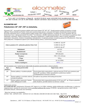 ELCOMETER 407 Połyskomierz 20O /60O /85O ze statystyką.