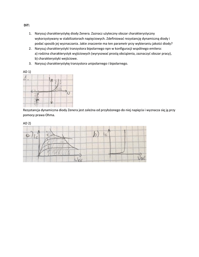 DiT: 1. Narysuj charakterystykę diody Zenera. Zaznacz użyteczny