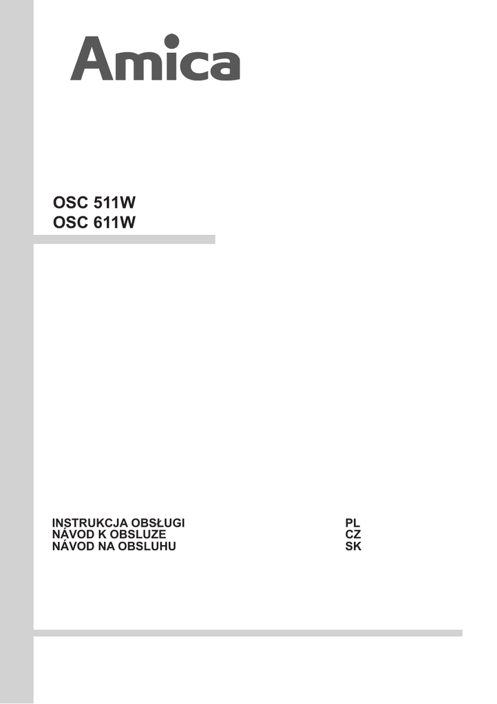 OSC 511W OSC 611W INSTRUKCJA OBSŁUGI NÁVOD K OBSLUZE NÁVOD NA OBSLUHU PL CZ SK Szanowni Państwo, PL Staliście się Państwo użytkownikami najnowszej generacji okapu kuchennego. Okap ten został zaprojektowany i wykonany specjalnie z myślą o spełnieniu Państwa oczekiwań i z pewnością będzie stanowić część nowocześnie wyposażonej kuchni. Zastosowane w nim nowoczesne rozwiązania konstrukcyjne i użycie najnowszej technologii produkcji, zapewniają mu wysoką funkcjonalność i estetykę. Przed przystąpieniem do montażu okapu prosimy o dokładne zapoznanie się z treścią niniejszej instrukcji. Dzięki temu unikną Państwo błędnej instalacji i obsługi okapu. Życzymy satysfakcji i zadowolenia z wyboru okapu naszej firmy Uwaga! Wyrób przeznaczony jest wyłącznie do użytku domowego. Producent zastrzega sobie możliwość dokonywania zmian nie wpływających na działanie urządzenia. Dopuszczalne są zmiany w wyposażeniu, wystroju wewnętrznym i zewnętrznym wyrobu, nie wpływające na jego funkcjonalność i bezpieczeństwo. Vážení kupující, CZ Stali jste se uživateli nejnovější generace kuchyňských digestoří. Digestoř byla zaprojektována a vyrobena především proto, aby splnovala Vaše očekávání a zcela určitě bude součástí moderně vybavené kuchyně. Použitá v ní nejnovější konstrukční řešení a technologie zajištují vysokou funkčnost a estetiku. Před začátkem montáže prosíme o důkladné seznámení se s obsahem tohoto návodu. Díky tomu předejdete chybnému zainstalování a obsluze digestoře. Přejeme Vám spokojenost a příjemný pocit z volby této digestoře. Pozor! Kuchyňský odsavač je určený pouze pro použití v domácnosti. Výrobce si vyhrazuje možnost provádění změn, jež neovlivňují činnost zařízení. Vážení kupující, SK Stali ste sa užívateľmi najnovšej generácie kuchynských digestorov. Digestor bol navrhnutý a vyrobený tak, aby spĺňal vaše nároky a stal sa súčasťou moderne vybavenej kuchyne. Moderné konštrukčné riešenie a technológie použité pri výrobe zaisťujú vysokú účinnosť a estetické pôsobenie. Pred začatím montáže preštudujte láskavo dôkladne tento návod. Len tak predídete chybám pri inštalácii a obsluhe digestora. Prajeme vám mnoho spokojnosti s naším výrobkom. POZOR! Kuchyňský odsavač je určený pouze pro použití v domácnosti. Výrobca neodpovedá za žiadne poškodenie, ktoré vzniklo v dôsledku montáže a používania v nesúlade s návodom na obsluhu. PL I CHARAKTERYSTYKA II WYPOSAŻENIE III DANE TECHNICZNE IV WARUNKI EKSPLOATACJI V MONTAŻ VI OBSŁUGA I KONSERWACJA VII GWARANCJA I OBSŁUGA POSPRZEDAŻNA 7 7 7 8 9 10 12 CZ I CHARAKTERYSTIKA II VYBAVENÍ III TECHNICKÉ ÚDAJE IV Bezpečnostní pokyny V MONTAŻ VI OBSLUHA A ÚDRŽBA VII ZÁRUKA A POPRODEJNÍ SERVIS 13 13 13 14 15 16 18 SK I CHARAKTERISTIKA II VYBAVENIE III TECHNICKÉ ÚDAJE IV EXPLOATAČNÉ PODMIENKY V MONTÁŽ VI OBSLUHA A ÚDRŽBA VII Záruka a popredajna obsluha. 3 19 19 19 20 21 22 24 1 2 3 6 4 A 4 5 7 Min 65/75 cm PL I CHARAKTERYSTYKA Okap nadkuchenny służy do usuwania oparów kuchennych. Wymaga on zainstalowania przewodu odprowadzającego powietrze na zewnątrz. Długość przewodu (najczęściej rura Ø 150 lub 120mm) nie powinna być dłuższa niż 4-5 m. Po zainstalowaniu filtra z węglem aktywnym okap może pracować jako pochłaniacz zapachów. W tym przypadku nie wymaga się instalowania przewodu odprowadzającego powietrze na zewnątrz, zaleca się natomiast montaż kierownicy wydmuchu powietrza. Okap nadkuchenny jest urządzeniem elektrycznym wykonanym w klasie ochrony przeciwporażeniowej podanej w tabeli ze specyfikacją techniczną. Okap posiada niezależne oświetlenie oraz wentylator wyciągowy z możliwością ustawienia jednej z trzech prędkości obrotowych.Okap jest przeznaczony do trwałego zamocowania na pionowej ścianie ponad kuchenką gazową lub elektryczną. II WYPOSAŻENIE Okap nadkuchenny jest złożony z następujących elementów (Rys. 1): A. B. C. D. E. F. Korpus okapu, Zaślepka otworu wylotowego, Króciec przyłączeniowy, Panel sterowania Szyba przednia Kratka wylotu powietrza III DANE TECHNICZNE Typ okapu OSC 511 W OSC 611 W Napięcie zasilania AC 230V ~50Hz AC 230V ~50Hz Silnik wentylatora 1 1 Oświetlenie 28W 28W Ilość filtrów tłuszcz. 1 1 Stopnie prędkości 3 3 Szerokość [cm] 50 60 Głębokość [cm] 47 47 Wysokość [cm] ~13 ~13 Wylot [ø mm] 120 120 Wydajność [m 3/h] max. 335 max. 335 Pobór mocy [W] 138 138 Głośność [dBA] 51 51 4,2 Waga [kg] 3,7 Klasa ochrony przeciwporażeniowej II II Rodzaj pracy Wyciąg lub pochłaniacz Wyciąg lub pochłaniacz Kolor Biały Biały 5 PL IV WARUNKI EKSPLOATACJI 1. Okap nadkuchenny, służy do usuwania oparów kuchennych na zewnątrz, należy podłączyć go do odpowiedniego kanału wentylacyjnego (nie podłączać do kanałów kominowych, dymowych lub spalinowych, będących w eksploatacji). 2. Urządzenie należy zamontować na wysokości, co najmniej 650 mm od płyty kuchennej. Jeżeli w instrukcjach instalowania urządzeń gazowych podano większą odległość, należy to uwzględnić. 3. Pod okapem kuchennym nie wolno pozostawiać odkrytego płomienia, podczas zdejmowania naczyń znad palnika, należy ustawić minimalny płomień. 4. Potrawy przygotowywane na tłuszczach powinny być stale nadzorowane, gdyż przegrzany tłuszcz może się łatwo zapalić. 5. Filtr przeciw tłuszczowy do okapu kuchennego należy czyścić, co najmniej, co 1 miesiąc, gdyż nasycony tłuszczem jest łatwopalny. 6. Przed każdą operacją czyszczenia, wymianą filtra lub przed podjęciem prac naprawczych, należy wyjąć wtyczkę urządzenia z gniazdka. 7. Jeżeli w pomieszczeniu, oprócz okapu, eksploatuje się inne urządzenia o zasilaniu nieelektrycznym (np. piece na paliwa ciekłe, grzejniki przepływowe, termy), należy zadbać o wystarczającą wentylację (do
