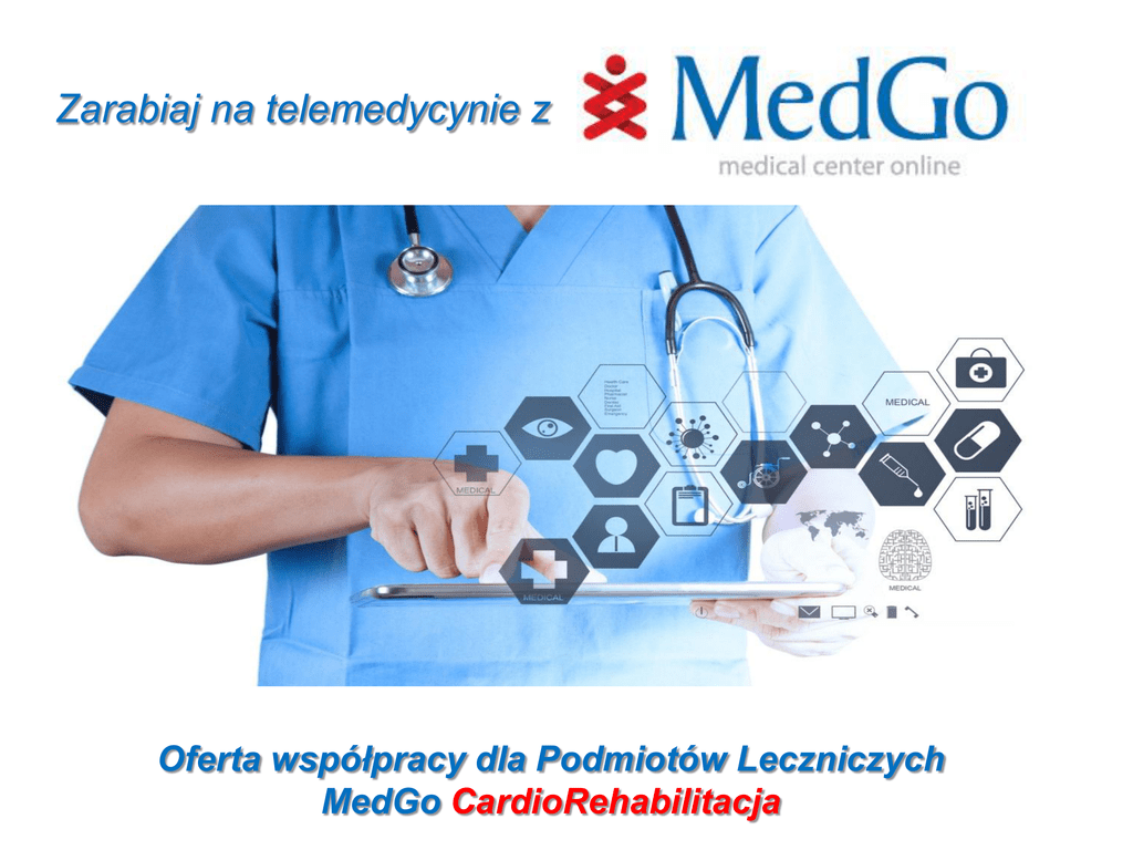 Zarabiaj na telemedycynie z Oferta współpracy dla Podmiotów Leczniczych MedGo CardioRehabilitacja Współpraca Bądź nowoczesny i dołącz do Placówek zarabiających na telemedycynie. Oto nowe usługi MedGo, które pozwolą zwiększać Twoje dochody: 3 Dostępne usługi: Domowa eRehabilitacja Kardiologiczna - prowadzenie zdalnej kompleksowej rehabilitacji kardiologicznej w warunkach domowych. Opcjonalnie służyć może do lokalizowania (GPS) pacjentów i tworzenia tzw. stref bezpiecznych pacjenta (tzw. geofencing). Umożliwia rejestrację pracy serca Pacjenta oraz wykonanie innych pomiarów jak masa ciała, ciśnienie tętnicze lub saturacji krwi (stopień nasycenia tlenem). Każda rejestracja zostaje zapamiętana w wewnętrznej pamięci aparatu Eho Mini (po prawej) i wysłana do właściwego ośrodka medycznego poprzez siec GSM. W czasie wykonywanie rehabilitacji kardiologicznej, Pacjent przytwierdza w odpowiednie miejsca swojego ciała specjalne elektrody i dołącza do nich końcówki kabla elektrodowego aparatu a także inne urządzenia jak waga, ciśnieniomierz lub czujnik saturacji. Sesja rehabilitacji może rozpoczynać się od pomiaru ciśnienia tętniczego krwi, pomiaru masy ciała i pomiary EKG. Czasami sesja rozpoczyna się tylko pomiarem EKG bez wstępnych pomiarów masy ciała i ciśnienia. Wykonanie tych pomiarów spowoduje ich wysłanie do ośrodka monitorowania, gdzie przykładowo pielęgniarka po przeprowadzeniu rozmowy z pacjentem zezwoli lub nie na dalszy proces. Właściwa sesja rehabilitacji polega na wykonywaniu kilku cykli ćwiczeń i odpoczynków, oraz pomiarów EKG po każdym ćwiczeniu i może trwać od kilku do kilkudziesięciu minut. 3 Twoje korzyści Partner jako dystrybutor sam decyduje czy będzie korzystał z usług w formie abonamentu czy zakupi urządzenia na własność. Sposób rozliczeń można dopasować do potrzeb Partnera. Partner ma możliwość wypożyczania urządzeń Pacjentom bądź odsprzedawania ich w ramach świadczenia usług. Przy stosunkowo niewielkich kosztach jakie ponosi Partner podczas wdrożenia usług, ma on swobodę ustalania cen dla Pacjentów w czasie świadczenia usług Zyskiem partnera ze świadczenia usług jest różnica pomiędzy ceną zakupu urządzenia od MedGo a ceną sprzedaży dla Pacjenta W przypadku abonamentu Partner zarabia na ustalonej przez siebie cenie za poszczególne usługi, które świadczy Pacjentom za pomocą posiadanych urządzeń To Partner decyduje ile zarobi na poszczególnej usłudze, ponieważ sam ustala poziomy cen dla Pacjentów. Partner otrzymuje poręczne i proste w obsłudze urządzenia- badania mogą być wykonywane zarówno przez Lekarzy jak i przez niższy Personel Urządzenie bezprzewodowe, odporne na zmienne warunki atmosferyczne- badania mogą być wykonywane we wszystkich gabinetach w Placówce oraz w domu Pacjenta Bardzo prosty w obsłudze intuicyjny system, który mogą obsługiwać zarówno lekarze jak i niższy personel Lekarze nie muszą wykonywać opisów samodzielnie- oszczędność czasu Łatwy dostęp do bazy wszystkich badanych pacjentów i ich wyników w jednym systemie Placówka poszerza zakres swoich usług o nowoczesne usługi telemedyczne, co zwiększa jej konkurencyjność Usługa generuje dodatkowe przychody dla placówki za wprowadzenie dodatkowej usługi dla pacjentów Placówki nie posiadające poradni kardiologicznych i specjalistycznego personelu, nie muszą kierować swoich pacjentów do innych przychodni- dostarczając im kompleksową obsługę i zatrzymując pacjenta u siebie- uzyskują przychód Zmniejszenie kolejek do specjalistów, związanych z oczekiwaniem na wizytę i badanie Wzrost zadowolenia z usług placówki wśród pacjentów Zwiększenie liczby pacjentów o tych, którzy będą korzystać z nowej usługi Placówka może zwiększyć obszar swojej działalności i pozyskiwać pacjentów, którzy będą zainteresowani nową usługą z dalszych miejscowości 3 Oferta szczegółowa Nazwa usługi Partner korzysta z Co obejmuje usługi w abonamencie Partner kupuje urządzenia na własność Co obejmuje Domowa eRehabilitacja Kardiologiczna • abonament 350zł brutto dla dystrybutora przez 12 miesięcy • koszt urządzenia + opłata aktywacyjna z dostępem do aplikacji przez 12 miesięcy 810zł netto • opłata za SIM 10 zł netto •obsługa kontaktu 5zł/min połączenia netto •(23% VAT) • urządzenie Eho Mini • korzystanie z rozwiązań MedGo 3 • urządzenie Eho Mini • konsultacje kardiologiczne • system • szkolenia z obsługi systemu • telemetryczna transmisja danych Modele współpracy - podsumowanie • ABONAMENT– MedGo jest dostawcą usługi, a Placówka otrzymuje urządzenia, system oraz dostęp do szkoleń w ramach jednej opłaty abonamentowej. • ZAKUP URZĄDZEŃ NA WŁASNOSĆ– Placówka Medyczna kupuje od MedGo urządzenia i system i dysponuje nimi w dowolny sposób. Oczywiście ma możliwość korzystania z rozwiązań MedGo za dodatkową opłatą. Zaufali nam między innymi: Dziękuję za uwagę Tomasz Dziobiak Prezes Zarządu tel: +48 533 950 170 [email protected] 7