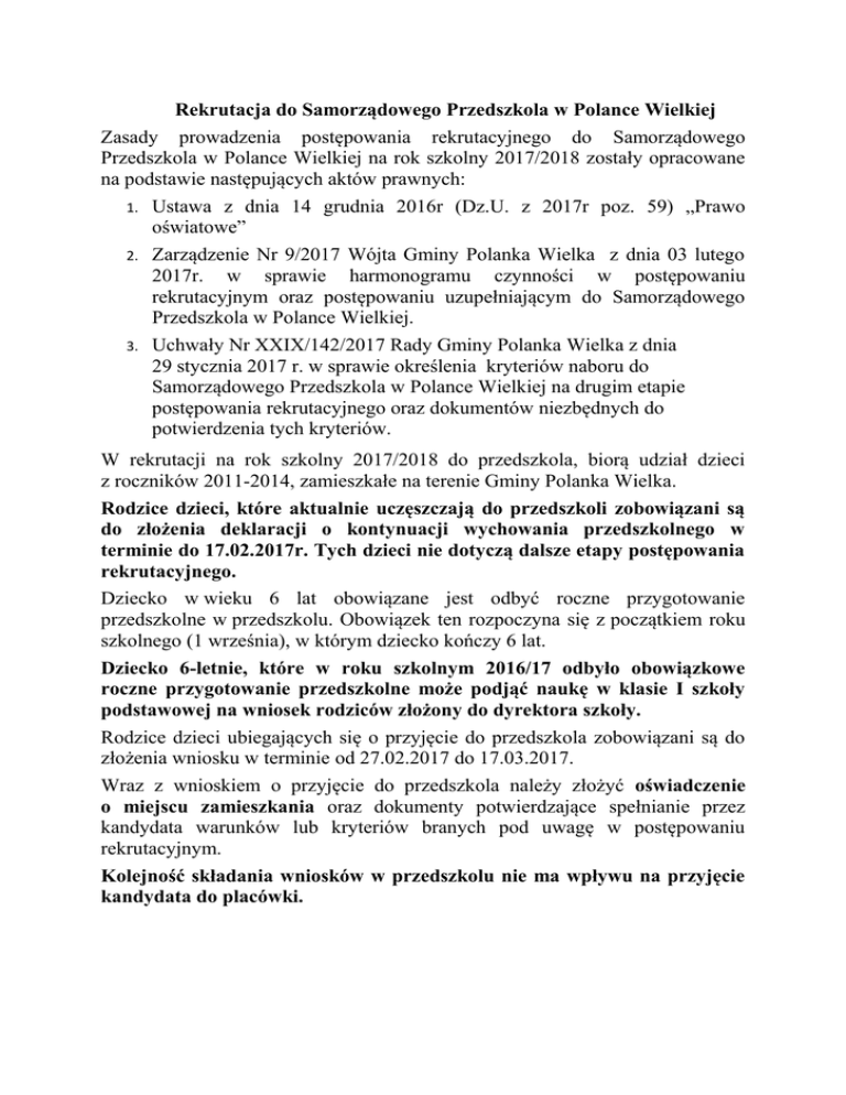 rekrutacja-2017-18 - Samorządowe Przedszkole w Polance Wielkiej