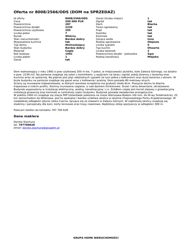 Oferta nr 8008/2566/ODS (DOM na SPRZEDAŻ)