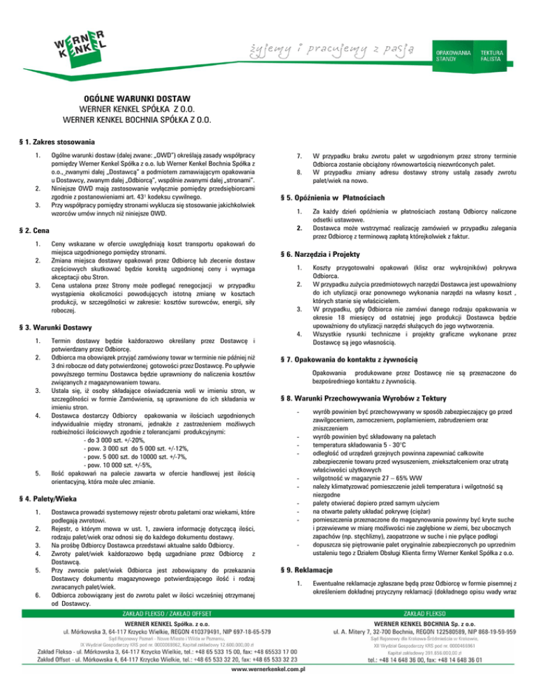 OGÓLNE WARUNKI DOSTAW WERNER KENKEL SPÓŁKA Z O.O.