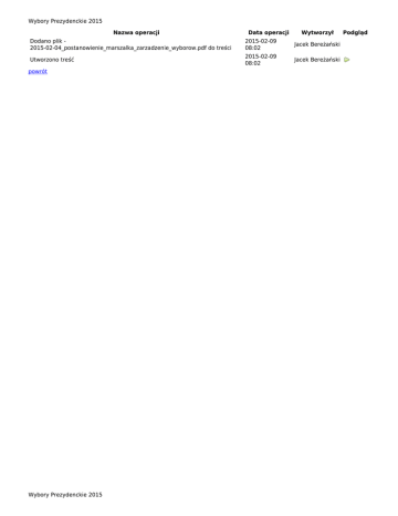 Wybory Prezydenckie 2015 Nazwa operacji Data operacji Wytworzył Dodano plik 2015-02-04_postanowienie_marszalka_zarzadzenie_wyborow.pdf do treści 2015-02-09 08:02 Jacek Bereżański Utworzono treść 2015-02-09 08:02 Jacek Bereżański powrót Wybory Prezydenckie 2015 Podgląd