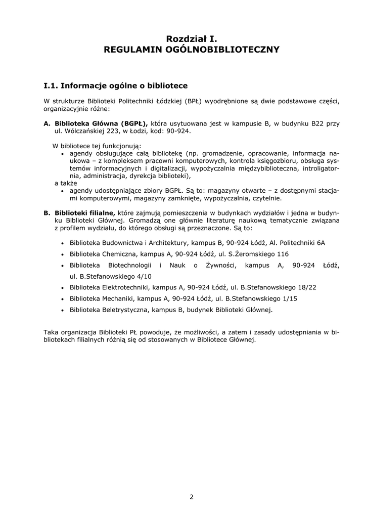 Rozdział I. REGULAMIN OGÓLNOBIBLIOTECZNY