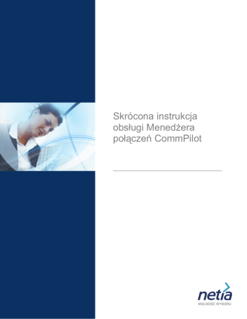 Skrócona instrukcja obsugi Menedera pocze CommPilot IntegralNet Skrócona instrukcja obsugi Menedera pocze CommPilot IntegralNet Uzyskiwanie poczenia 1. Wybierz spis telefonów. Aby wywietli spis telefonów, kliknij zakadk Firma. UWAGA: Opis tworzenia spisu telefonów znajduje si w rozdziale Spis telefonów. 2. Wybierz numer telefonu. Aby wypeni pole Wprowad numer telefonu, kliknij dowoln pozycje ze Spisu telefonów. 3. Kliknij przycisk Zadzwo lub nacinij klawisz Enter. IntegralNet 4. Przy pierwszym poczeniu zadzwoni telefon, a po podniesieniu suchawki z wideek zadzwoni telefon u drugiego abonenta. Przy uzyskiwaniu drugiego poczenia, kliknicie przycisku Zadzwo spowoduje automatyczne podtrzymanie poczenia bez rozczania. UWAGA: Numery telefonów mona wybiera bezporednio z klawiatury komputera i wstawia do pola Wprowad numer telefonu), lub wybiera rcznie na klawiaturze aparatu telefonicznego. Odbieranie drugiego poczenia Odbierajc drugi poczenie, suchawk aparatu telefonicznego naley podnie z wideek. 1. Aby wybra poczenie, które chcesz odebra, kliknij w polu Pole obsugi pocze. 2. Kliknij przycisk Rozmowa (wczeniejsze poczenie zostanie zawieszone bez rozczenia). Rozczanie poczenia 1. Kliknij w polu Pole obsugi pocze na poczeniu, które ma by rozczone. 2. Kliknij przycisk Przerwij. UWAGA: Aby uzyska kolejne poczenie, suchawk aparatu telefonicznego naley odoy na wideki po rozczeniu wszystkich pocze. IntegralNet Podtrzymywanie pocze bez rozczenia 1. Kliknij w polu Pole obsugi pocze na poczeniu, które ma by podtrzymane bez rozczenia. 2. Kliknij przycisk Zawie. Powracanie do poczenia podtrzymanego bez rozczenia 1. Kliknij w polu Pole obsugi pocze na poczeniu, do którego naley powróci. 2. Kliknij przycisk Rozmowa. Powtarzanie ostatnio wybieranego numeru 1. Kliknij przycisk Dzwo ponownie. 2. Jeli nie ma aktualnie adnego zestawionego poczenia, zadzwoni telefon, a po podniesieniu suchawki z wideek zadzwoni telefon u drugiego abonenta. Pole Wprowad numer telefonu jest puste. IntegralNet Wczanie funkcji Nie przeszkadza, Zawsze przekazuj poczenie lub Zdalne biuro Aby przej do strony konfiguracji usugi, kliknij przycisk DND (Nie przeszkadza) CFA (Zawsze przekazuj poczenie) lub RO (Zdalne biuro). UWAGA: Telefon nie bdzie dzwoni, jeli która z tych usug jest wczona. Poczenie konferencyjne trzech abonentów 1. Odbierz lub uzyskaj pierwsze poczenie. 2. Odbierz lub uzyskaj drugie poczenie. Pierwsze poczenie zostanie automatycznie podtrzymane bez rozczenia. 3. Kliknij przycisk Konferencja. 4. Wszyscy trzej abonenci uczestnicz w poczeniu konferencyjnym. UWAGA: Aby rozczy poczenie z którym z uczestników konferencji, wybierz to poczenie w polu Pole obsugi pocze, a nastpnie kliknij przycisk Przerwij. Aby wyciszy poczenie, kliknij przycisk Konferencja, a nastpnie przycisk Zawie. UWAGA: Kliknij przycisk Transferuj, jeli uczestniczysz w konferencji. Rozczysz si w ten sposób, ale pozostali abonenci nadal mog rozmawia (poczenie znika z menedera pocze CommPilot). IntegralNet Przyciski systemowe Wsparcie Otwórz now wiadomo poczty elektronicznej i poinformuj serwis o problemie. Pomoc Po naciniciu przycisku umieszczonego na kadej stronie wywietl si instrukcje obsugi funkcji dostpnych na tej stronie. Konfiguruj Dostp do stron konfiguracji usugi. Przekazanie poczenia telefonicznego na inny aparat bez powiadomienia 1. Kliknij w polu Pole obsugi pocze na poczeniu, które ma by przekazane. 2. Kliknij przycisk Zawie. 3. Korzystajc z zakadek lub naciskajc klawisz Enter wybierz numer telefonu. 4. Wybrany numer pojawia si w polu Wprowad numer telefonu. 5. Kliknij przycisk Transferuj. IntegralNet Przekazanie poczenia telefonicznego na inny aparat z powiadomieniem 1. Kliknij w polu Pole obsugi pocze na poczeniu, które ma by przekazane. 2. Kliknij przycisk Zawie. 3. Korzystajc z zakadek lub naciskajc klawisz Enter wybierz numer telefonu. 4. Wybrany numer pojawia si w polu Wprowad numer telefonu. 5. Kliknij przycisk Zadzwo. 6. Rozmawiaj z abonentem na linii. 7. Kliknij przycisk Transferuj (pole Wprowad numer telefonu jest puste). 8. Obaj abonenci prowadz rozmow. Przekazywanie poczenia do poczty gosowej 1. Gdy zadzwoni aparat telefoniczny i na ekranie wywietli si poczenie, kliknij w polu Pole obsugi pocze na poczeniu, które ma by przekazane do poczty gosowej. 2. Aby przekaza poczenie do wasnej skrzynki poczty elektronicznej, kliknij przycisk Wylij do VM. 3. Aby przekaza poczenie do skrzynki poczty elektronicznej innego abonenta, wpisz jego numer wewntrzny w polu Wprowad numer telefonu, a nastpnie kliknij przycisk Wylij do VM. IntegralNet CommPilot Express Zarzdzaj nadchodzcymi poczeniami zgodnie z profilami ustawionymi w CommPilot Express. Na internetowej stronie konfiguracji usugi Poczenia przychodzce – CommPilot Express wprowad informacje o swoim profilu. Aby wybra aktualny status, kliknij rozwijan strzak w menederze pocze CommPilot Manager. UWAGA: Jeli do pocze z portalem internetowym uywasz standardowej linii telefonicznej, oznacza to, e uywasz CommPilot Express SR, gdzie profile Dostpny – w pracy i Dostpny – poza biurem róni si od opisanych w tej instrukcji. Szczegóowe informacje znajduj si na internetowej stronie konfiguracji usugi Poczenia przychodzce – CommPilot Express. Dostpny – w pracy Okrela sposób obsugi pocze podczas twojej obecnoci w pracy. Mog to by dodatkowe dzwonki w telefonie, oraz reguy postpowania w przypadku zajtoci lub nieodebrania poczenia. Dostpny – poza biurem Okrela sposób obsugi pocze jeli moesz odbiera poczenia, ale nie ma ci w pracy. Moesz przekaza wszystkie poczenia do miejsca gdzie si aktualnie znajdujesz, nadchodzce poczenia mog te by kierowane do systemu komunikatów gosowych. Nadejcie nowego poczenia moe by równie sygnalizowane wiadomoci tekstow. IntegralNet Zajty Okrela sposób obsugi pocze jeli jeste zajty inn rozmow telefoniczn. Moesz przekaza poczenia inicjowane przez wybranych abonentów, nadchodzce poczenia mog te by kierowane do systemu komunikatów gosowych. Nadejcie 