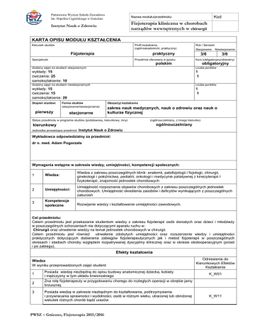 zabiegów fizjoterapeutycznych): zaliczenie z oceną .