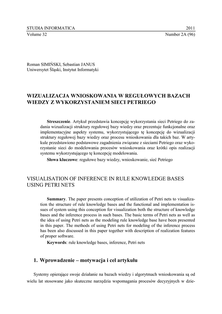 Sebastian JANUS: Uniwersytet Śląski, Instytut Informatyki, ul. Będzińska 39,