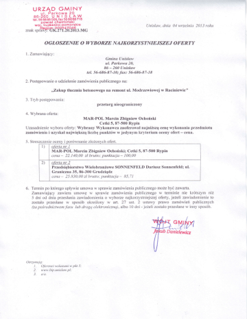 zamówieniai uzyskałnajwiększą|iczbępunktów w jedynym kryterium ocenyofert - cena.