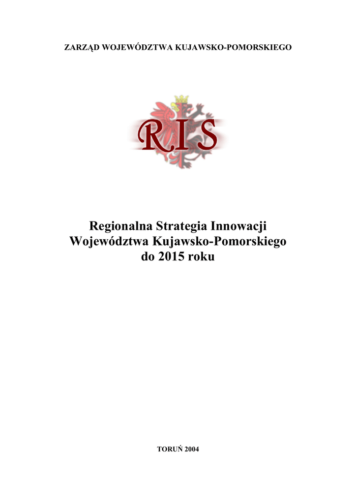 ZARZĄD WOJEWÓDZTWA KUJAWSKO-POMORSKIEGO Regionalna Strategia Innowacji Województwa Kujawsko-Pomorskiego do 2015 roku TORUŃ 2004 KOMITET STERUJĄCY PROJEKTU KUJAWY-POMORZE RIS dr Władysław Kubiak, Wicemarszałek Województwa Kujawsko-Pomorskiego, Przewodniczący Komitetu prof. dr hab. inż. Antoni Bukaluk, Prorektor ds. Nauki Akademii Techniczno-Rolniczej w Bydgoszczy, Z-ca Przewodniczącego prof. dr hab. Marek Zaidlewicz, Prorektor ds. Nauki i Współpracy z Zagranicą Uniwersytetu Mikołaja Kopernika w Toruniu prof. dr hab. Józef Kubik, Prorektor ds. Nauki Akademii Bydgoskiej w Bydgoszczy dr Andrzej Potoczek, Z-ca Dyrektora Departamentu Rozwoju Regionalnego Urzędu Marszałkowskiego w Toruniu mgr Sławomir Wiertel, Z-ca Dyrektora Departamentu Gospodarki i Infrastruktury Urzędu Marszałkowskiego w Toruniu mgr Andrzej Wegner, Starosta Tucholski dr Andrzej Baranowski, Dyrektor Wydziału Środowiska i Rolnictwa Urzędu Wojewódzkiego w Bydgoszczy dr Światosław Kudrycki, Wiceprezydent Kujawskiej Izby Przemysłowo-Handlowej we Włocławku mgr Janusz Niedźwiecki, Wiceprezes Izby Przemysłowo-Handlowej w Toruniu, Prezes APATOR S.A mgr Piotr Terlecki, Prezes Kujawsko-Pomorskiej Izby Przemysłowo-Handlowej w Bydgoszczy dr Jan Gołębiewski, Dyrektor Instytutu Przetwórstwa Tworzyw Sztucznych „Metalchem” mgr Henryk Skopowski, Dyrektor Oddziału Regionalnego PKO BP S.A. w Bydgoszczy KONSORCJUM WYKONAWCZE PROJEKTU Województwo Kujawsko-Pomorskie Akademia Techniczno-Rolnicza im. J.J. Śniadeckich w Bydgoszczy Uniwersytet Mikołaja Kopernika w Toruniu Wojewódzka Biblioteka Publiczna – Książnica Kopernikańska w Toruniu Toruńska Agencja Rozwoju Regionalnego w Toruniu Kujawsko-Pomorski Związek Pracodawców i Przedsiębiorców w Bydgoszczy Bydgoska Rada Federacji Stowarzyszeń Naukowo-Technicznych NOT w Bydgoszczy GRUPA ZARZĄDZAJĄCA mgr inż. Małgorzata Anforowicz, Akademia Techniczno-Rolnicza w Bydgoszczy mgr Zbigniew Barański, Toruńska Agencja Rozwoju Regionalnego w Toruniu prof. dr hab. inż. Antoni Bukaluk, Akademia Techniczno-Rolnicza w Bydgoszczy mgr Jerzy Górzyński, Kujawsko-Pomorski Związek Pracodawców i Przedsiębiorców w Bydgoszczy prof. dr hab. Mirosław Haffer, Uniwersytet Mikołaja Kopernika w Toruniu dr Rafał Haffer, Uniwersytet Mikołaja Kopernika w Toruniu dr Jolanta Konkel, Urząd Marszałkowski Województwa Kujawsko-Pomorskiego w Toruniu inż. Waldemar Książczak, Kujawsko-Pomorski Związek Pracodawców i Przedsiębiorców w Bydgoszczy dr inż. Ewa Rybińska, Toruńska Agencja Rozwoju Regionalnego w Toruniu prof. dr hab. inż. Michał Styp-Rekowski, Akademia Techniczno-Rolnicza w Bydgoszczy mgr Witold Szylman, Bydgoska Rada Federacji Stowarzyszeń Naukowo-Technicznych NOT w Bydgoszczy mgr Teresa Szymorowska, Wojewódzka Biblioteka Publiczna – Książnica Kopernikańska w Toruniu mgr Henryk Tomaszewski, Uniwersytet Mikołaja Kopernika w Toruniu mgr Edyta Urbańska, Uniwersytet Mikołaja Kopernika w Toruniu mgr Sławomir Wiertel, Urząd Marszałkowski Województwa Kujawsko-Pomorskiego w Toruniu dr inż. Sławomir Żak, Akademia Techniczno-Rolnicza w Bydgoszczy KIEROWNIK PROJEKTU prof. dr hab. inż. Antoni Bukaluk Prorektor ds. Nauki Akademii Techniczno-Rolniczej w Bydgoszczy NADZÓR NAD PROJEKTEM ZE STRONY URZĘDU MARSZAŁKOWSKIEGO mgr Sławomir Wiertel, Z-ca Dyrektora Departamentu Gospodarki i Infrastruktury Dokument powstał w ramach projektu celowego dla Regionalnych Strategii Innowacji 2 SPIS TREŚCI 1. WSTĘP ............................................................................................................................................................... 5 2. CHARAKTERYSTYKA POTENCJAŁU GOSPODARCZEGO WOJEWÓDZTWA...................................... 8 2.1. WOJEWÓDZTWO I JEGO GOSPODARKA................................................................................................. 8 2.2. POTENCJAŁ INNOWACYJNY REGIONU ................................................................................................ 13 3. TRYB I METODY PRAC NAD STRATEGIĄ INNOWACJI......................................................................... 19 4. WYNIKI PRZEPROWADZONYCH ANALIZ ............................................................................................... 24 4.1. ANALIZA POTRZEB FIRM W REGIONIE ................................................................................................ 24 4.2. ANALIZA SFERY BADAWCZO-ROZWOJOWEJ I JEDNOSTEK WSPOMAGAJĄCYCH INNOWACJE .................................................................................. 26 4.3. ANALIZA SWOT.......................................................................................................................................... 27 4.4. ANALIZA PROBLEMÓW ........................................................................................................................... 28 4.5. ANALIZA CELÓW....................................................................................................................................... 33 5. HARMONOGRAM DZIAŁAŃ........................................................................................................................ 37 6. KIERUNKI DZIAŁAŃ PROINNOWACYJNYCH ......................................................................................... 43 7. PILOTAŻOWE PROJEKTY ............................................................................................................................ 47 8. SYSTEM WDRAŻANIA I MONITORINGU REGIONALNEJ STRATEGII INNOWACJI WOJEWÓDZTWA KUJAWSKO-POMORSKIEGO....................................................................................... 56 9. ZAKOŃCZENIE.............................................................................................................................................. 60 10. LITERATURA .....................................................................................................................................