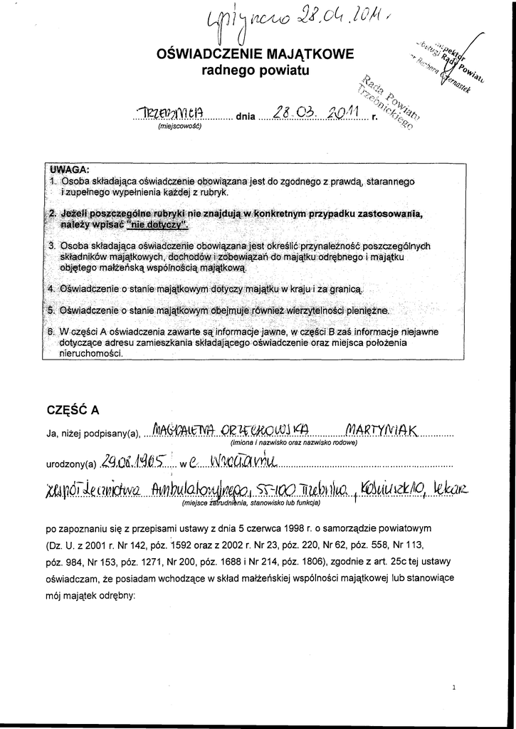 dotycząc€ : € d 1€ s u zamieszkaniaskładal.Łcego..ośwladczenie..Óraz