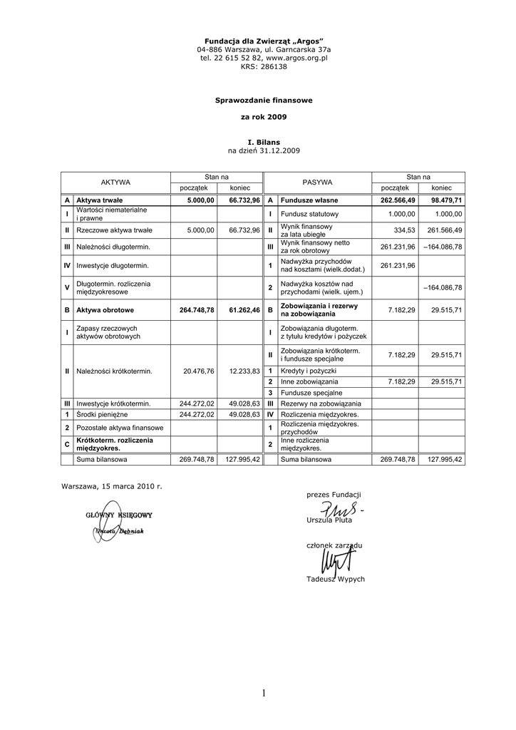 Sprawozdanie finansowe za 2009 r.