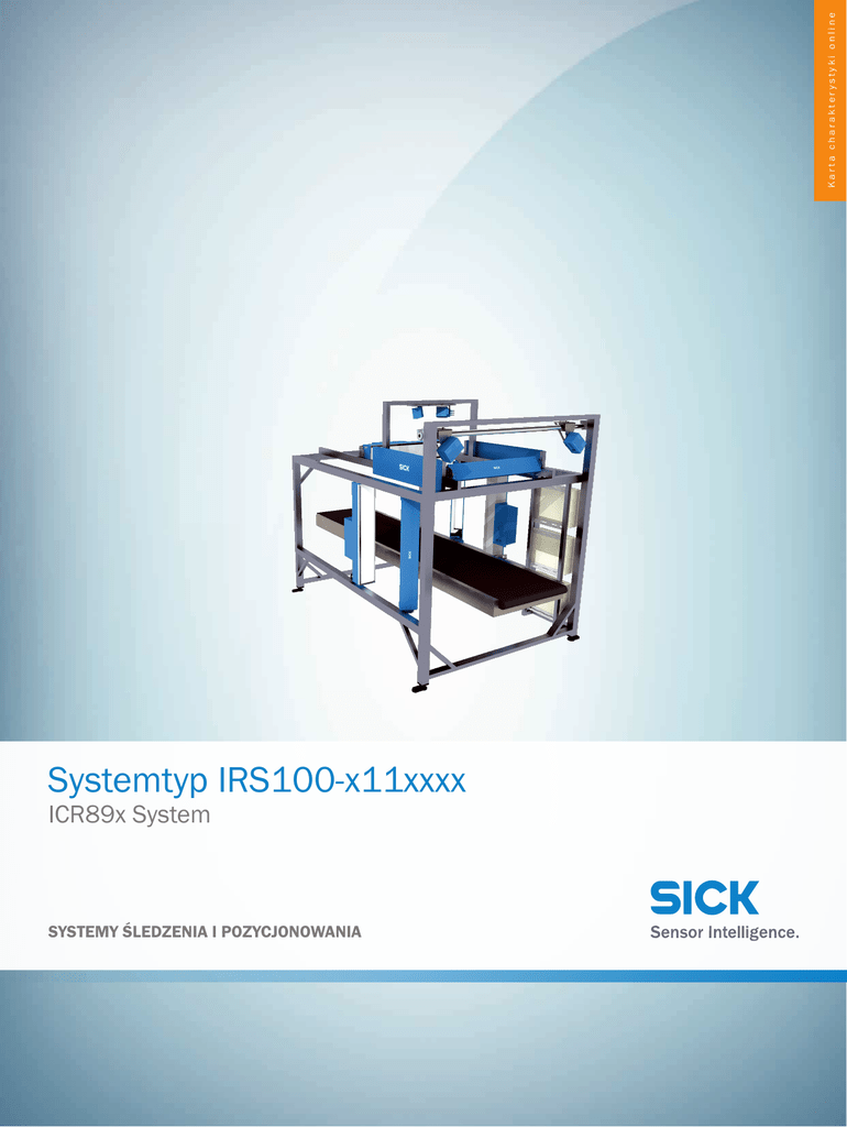 Karta charakterystyki online Systemtyp IRS100-x11xxxx ICR89x System SYSTEMY ŚLEDZENIA I POZYCJONOWANIA Systemtyp IRS100-x11xxxx | ICR89x System SYSTEMY ŚLEDZENIA I POZYCJONOWANIA A B C D E F H I J K L M N O P Q R S T Informacje do zamówienia Typ Nr artykułu Systemtyp IRS100-x11xxxx Na zapytanie Dokładne specyfikacje urządzenia i dane wydajnościowe produktu mogą się różnić i zależą od danego zastosowania oraz specyfikacji klienta. W wyborze właściwej konfiguracji urządzenia pomoże Państwu nasz regionalny przedstawiciel handlowy. więcej wersji urządzeń i akcesoriów www.sick.com/ICR89x_System Szczegółowe dane techniczne Cechy Rodzaj kamery ICR89x Kontroler MSC800 Szerokość oświetlenia 1.100 mm Ognisko Dynamiczne sterowanie ogniskową Szerokość pola odczytu 1.000 mm Wysokość pola odczytu 600 mm MTBF 80.000 h MTTR < 10 min Rozdzielczość obrazu 170 dpi (przy 3,8 m/s) Obrócenie obiektu ± 45° Liczba stron obiektu/kamer Strona górna albo lewa lub prawa strona (1 kamera) Maksymalna liczba stron obiektu/kamer Do 6 stron (16 kamer) Rodzaj techniki transportowej Pas Przenośniki krzyżowe Rolki Pojemniki przechylne Inne – informacja po złożeniu zapytania Typowa wysokość przenośnika 500 mm ... 1.200 mm Wydajność Typy kodu 2/5 Interleaved Codabar Code 128 Code 39 EAN/UPC z dodatkiem Add-on GS1-128 / EAN 128 Kody na przesyłkach Stosunek szerokości kresek 2:1 ... 3:1 Minimalna przerwa pomiędzy obiektami 50 mm Typy kodu 2D Data Matrix ECC200 MaxiCode QR Code PDF417 Inne – informacja po złożeniu zapytania 2 ROZWIĄZANIA SYSTEMOWE | SICK Karta charakterystyki online | 2017-02-20 16:36:10 Informacje mogą ulec zmianie bez powiadomienia Systemtyp IRS100-x11xxxx | ICR89x System SYSTEMY ŚLEDZENIA I POZYCJONOWANIA Liczba obiektów na sekundę 10 Mechanika/elektryka Wymiary, system (dł. x szer. x wys.) 2.150 mm x 1.800 mm x 2.000 mm (Wysokość do 2700 mm zależnie od wysokości przenośnika) Wyzwalanie SICK WL18-3P430 1) Enkoder SICK DFV60 2) Pobór mocy Zależnie od konfiguracji 1) 2) Jeżeli dostarczone przez SICK. Rozdzielczość 0,2 mm (tylko w przypadku przenośnika taśmowego). Dane dotyczące otoczenia Kontrast druku kodu kreskowego (PCS) ≤ 40 % Temperatura otoczenia podczas pracy 0 °C ... +50 °C Temperatura otoczenia – przechowywanie –20 °C ... +70 °C Dopuszczalna względna wilgotność powietrza 95 %, bez kondensacji Odporność na światło zewnętrzne 2000 lx na kod Klasyfikacje ECl@ss 5.0 27280103 ECl@ss 5.1.4 27280103 ECl@ss 6.0 27280103 ECl@ss 6.2 27280103 ECl@ss 7.0 27280103 ECl@ss 8.0 27280103 ECl@ss 8.1 27280103 ECl@ss 9.0 27280103 ETIM 5.0 EC002550 ETIM 6.0 EC002550 UNSPSC 16.0901 43211701 2017-02-20 16:36:10 | Karta charakterystyki online Informacje mogą ulec zmianie bez powiadomienia ROZWIĄZANIA SYSTEMOWE | SICK 3 Systemtyp IRS100-x11xxxx | ICR89x System SYSTEMY ŚLEDZENIA I POZYCJONOWANIA A B C D E F H I J K L M N O P Q R S T Oznaczenie Read field width 1) 2) 600 mm 60 800 mm 80 1000 mm 100 1200 mm 120 1400 mm 140 Conveyor type B Belt C Cross belt K Chain conveyor R Roller conveyor T Till-tray sorter Number of reading sites 1 2 3 4 5 6 Numer of cameras 1 1 2 2 3 3 4 4 5 5 6 6 7 7 8 8 9 9 A 10 F 16 Focussing O Fixfocus M MLG V VMSx10 (single-head) W VMSx20 (double-head) Frame C Customer frame F SICK frame (including mecanical design) Extension add. Components 0 Standard 1 Scale 2 OPS 3 RFID 4 Lector Extension add. Special functions 0 Standard 1 LFT: MID/OIML 2 Image display 3 Remote: MPR or something like it IRS - 1) Assignment read field width: the tolerance is max. 50mm, e. g. at 650 mm read field width will be still a 060, 651 mm would already be a 080 system. 2) 4 The step of the read field width is fixed at 200 mm. ROZWIĄZANIA SYSTEMOWE | SICK Karta charakterystyki online | 2017-02-20 16:36:10 Informacje mogą ulec zmianie bez powiadomienia Systemtyp IRS100-x11xxxx | ICR89x System SYSTEMY ŚLEDZENIA I POZYCJONOWANIA Rysunek wymiarowy (Wymiary w mm) Kamera ICR89x Wykres pola odczytu Typ kamery ICD890 z zespołem oświetleniowym ICI890 (1100 mm) Reading field height in mm (inch) 600 (23.62) 400 (15.75) 200 (7.87) a b c d 0 –200 (–7.87) –400 (–15.75) –600 (–23.62) 1,200 1,600 2,000 2,400 2,800 3,200 (47.24) (62.99) (78.74) (94.49) (110.24) (125.98) Reading distance in mm (inch) Resolution a: 0.15 mm (5.9 mil), 250 dpi b: 0.20 mm (7.9 mil), 200 dpi c: 0.25 mm (9.8 mil), ≥ 170 dpi d: 0.30 mm (11.8 mil), ≥ 150 dpi 2017-02-20 16:36:10 | Karta charakterystyki online Informacje mogą ulec zmianie bez powiadomienia ROZWIĄZANIA SYSTEMOWE | SICK 5 Karta charakterystyki online SICK W SKRÓCIE Firma SICK należy do czołowych producentów inteligentnych czujników i rozwiązań wykorzystujących czujniki do zastosowań przemysłowych. Wyjątkowa gama produktów i usług stwarza idealną podstawę dla bezpiecznego i wydajnego sterowania procesami, ochrony ludzi przed wypadkami i unikania zanieczyszczenia środowiska. Mamy szerokie doświadczenie w różnych branżach i znamy występujące w nich procesy oraz wymagania. Nasze inteligentne czujniki zapewniają klientom dokładnie to, czego im potrzeba. W centrach aplikacji w Europie, Azji i Ameryce Północnej rozwiązania systemowe są testowane i optymalizowane pod kątem potrzeb konkretnych klientów. Wszystko to sprawia, że jesteśmy niezawodnym dostawcą i partnerem w zakresie rozwoju. Naszą ofertę dopełniają kompleksowe usługi: rozwiązania SICK LifeTime Services wspierają klientów w trakcie całego cyklu użytkowania maszyny i dbają o bezpieczeństwo i produktywność. Właśnie tak rozumiemy hasło „Sensor Intelligence”. BLISKO KLIENTA NA CAŁYM ŚWIECIE: Osoby kontaktowe i pozostałe lokalizacje - www.sick.com SICK AG |Waldkirch|Niemcy |www.sick.com
