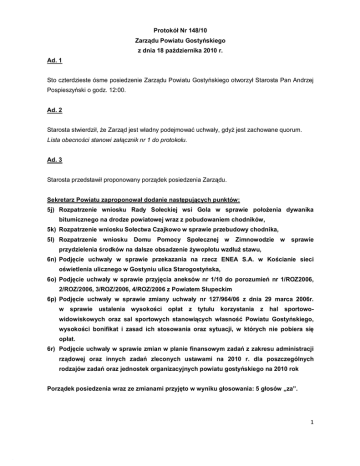1 Protokół Nr 148/10 Zarządu Powiatu Gostyńskiego z dnia 18