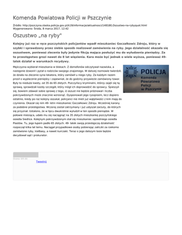 Komenda Powiatowa Policji w Pszczynie Oszustwo „na ryby"