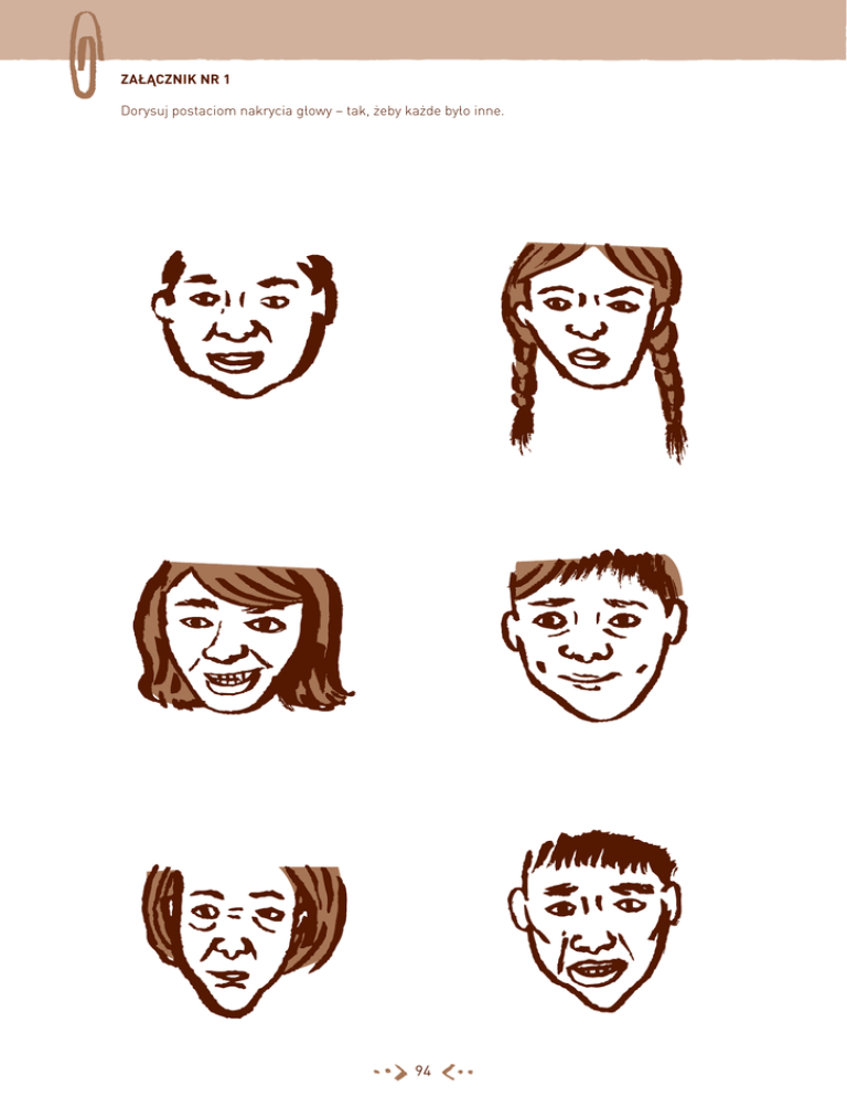 ZAŁĄCZNIK NR 1 Dorysuj postaciom nakrycia głowy – tak, żeby każde było inne. 94