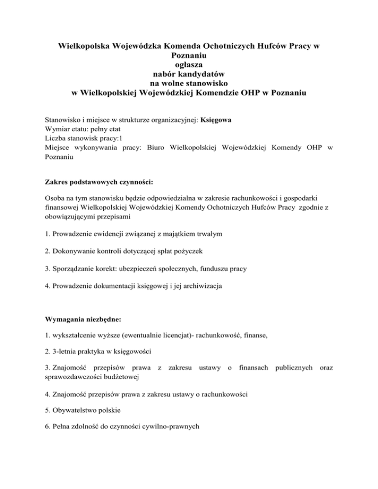 Praca-oferta 8-księgowa - Wielkopolska Wojewódzka Komenda OHP