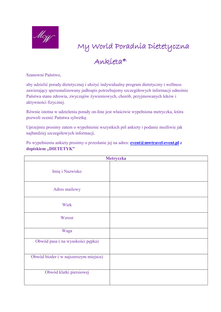 Ankieta Dietetyk My World-kliknij tutaj