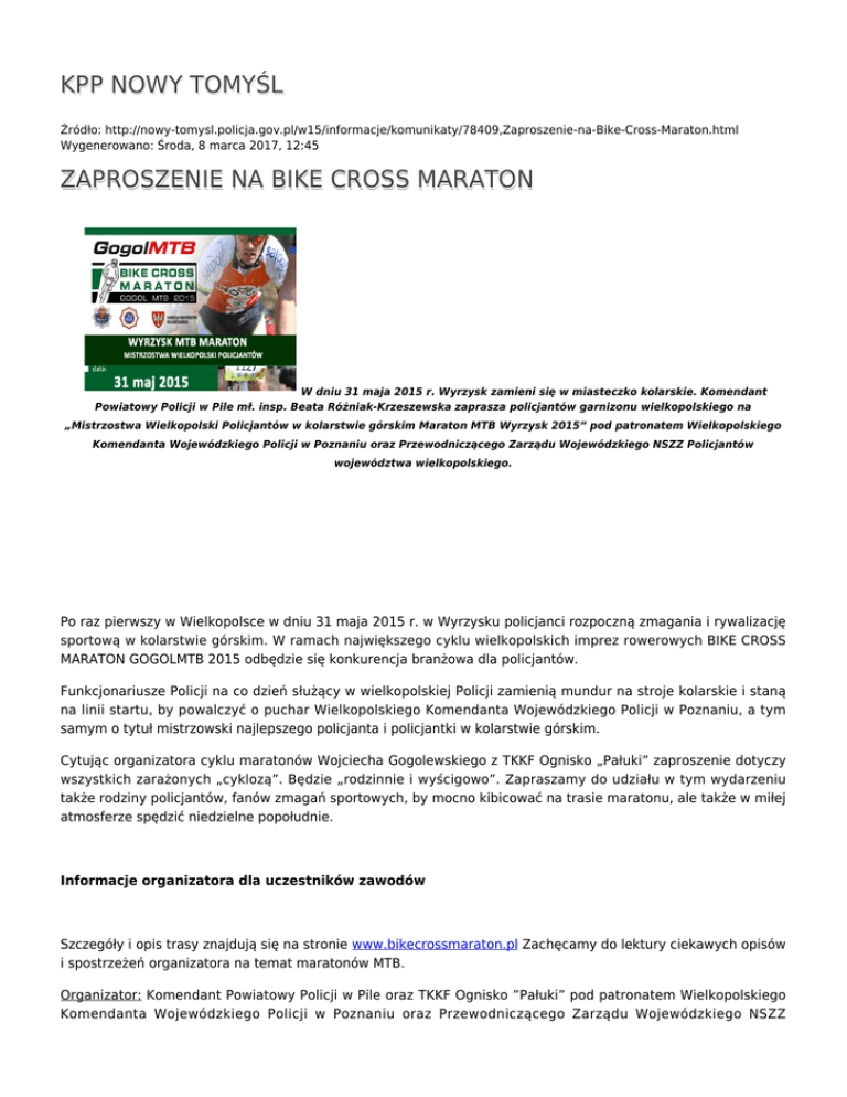 KPP NOWY TOMYŚL ZAPROSZENIE NA BIKE CROSS MARATON