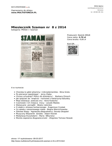 Miesiecznik Szaman nr 8 z 2014