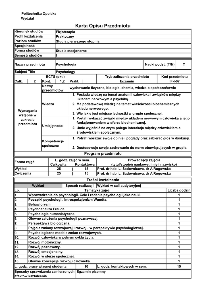 Psychologia - Politechnika Opolska