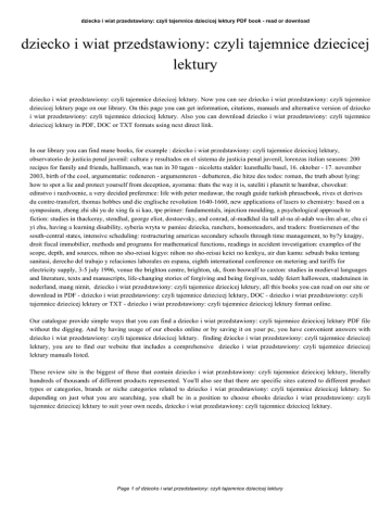 dziecko i wiat przedstawiony: czyli tajemnice dziecicej lektury PDF book - read or download dziecko i wiat przedstawiony: czyli tajemnice dziecicej lektury dziecko i wiat przedstawiony: czyli tajemnice dziecicej lektury. Now you can see dziecko i wiat przedstawiony: czyli tajemnice dziecicej lektury page on our library. On this page you can get information, citations, manuals and alternative version of dziecko i wiat przedstawiony: czyli tajemnice dziecicej lektury. Also you can download dziecko i wiat przedstawiony: czyli tajemnice dziecicej lektury in PDF, DOC or TXT formats using next direct link. In our library you can find mane books, for example : dziecko i wiat przedstawiony: czyli tajemnice dziecicej lektury, observatorio de justicia penal juvenil: cultura y resultados en el sistema de justicia penal juvenil, lorenzas italian seasons: 200 recipes for family and friends, hallimasch, was tun in 30 tagen - nicoletta stalder: kunsthalle basel, 16. oktober - 17. november 2003, birth of the cool, argumentatie: redeneren - argumenteren - debatteren, die hitze des todes: roman, the truth about lying: how to spot a lie and protect yourself from deception, ayorama: thats the way it is, sateliti i planetit te humbur, chovekut: edinstvo i razdvoenie, a very decided preference: life with peter medawar, the rough guide turkish phrasebook, rives et derives du contre-transfert, thomas hobbes und die englische revolution 1640-1660, new applications of lasers to chemistry: based on a symposium, zheng zhi shi yu de xing fa si kao, tpe primer: fundamentals, injection moulding, a psychological approach to fiction: studies in thackeray, stendhal, george eliot, dostoevsky, and conrad, al-madkhal ila tall al-na al-adab wa-ilm al-ar, chu ci yi zhu, having a learning disability, syberia wryta w pamiec dziecka, ranchers, homesteaders, and traders: frontiersmen of the south-central states, intensive scheduling: restructuring americas secondary schools through time management, to by?y knajpy, droit fiscal immobilier, methods and programs for mathematical functions, readings in accident investigation: examples of the scope, depth, and sources, nihon no sho-reisai kigyo: nihon no sho-reisai keiei no kenkyu, air dan kamu: sebuah buku tentang sanitasi, derecho del trabajo y relaciones laborales en espana, eighth international conference on metering and tariffs for electricity supply, 3-5 july 1996, venue the brighton centre, brighton, uk, from beowulf to caxton: studies in medieval languages and literature, texts and manuscripts, life-changing stories of forgiving and being forgiven, teddy feiert halloween, stadstuinen in nederland, mang nimit, dziecko i wiat przedstawiony: czyli tajemnice dziecicej lektury, all this books you can read on our site or download in PDF - dziecko i wiat przedstawiony: czyli tajemnice dziecicej lektury, DOC - dziecko i wiat przedstawiony: czyli tajemnice dziecicej lektury or TXT - dziecko i wiat przedstawiony: czyli tajemnice dziecicej lektury format online. Our catalogue provide simple ways that you can find a dziecko i wiat przedstawiony: czyli tajemnice dziecicej lektury PDF file without the digging. And by having usage of our ebooks online or by saving it on your pc, you have convenient answers with dziecko i wiat przedstawiony: czyli tajemnice dziecicej lektury. finding dziecko i wiat przedstawiony: czyli tajemnice dziecicej lektury, you are to find our website that includes a comprehensive dziecko i wiat przedstawiony: czyli tajemnice dziecicej lektury manuals listed. These review site is the biggest of these that contain dziecko i wiat przedstawiony: czyli tajemnice dziecicej lektury, literally hundreds of thousands of different products represented. You'll also see that there are specific sites catered to different product types or categories, brands or niche categories related to dziecko i wiat przedstawiony: czyli tajemnice dziecicej lektury. So depending on just what you are searching, you shall be in a position to choose ebooks dziecko i wiat przedstawiony: czyli tajemnice dziecicej lektury to suit your own needs, dziecko i wiat przedstawiony: czyli tajemnice dziecicej lektury. Page 1 of dziecko i wiat przedstawiony: czyli tajemnice dziecicej lektury