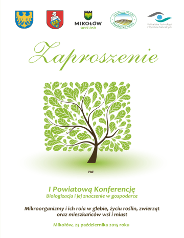 I Powiatową Konferencję Biologizacja i jej znaczenie w gospodarce Mikroorganizmy i ich rola w glebie, życiu roślin, zwierząt oraz mieszkańców wsi i miast Mikołów, 23 października 2015 roku Uprzejmie zapraszamy na IPowiatowąKonferencjęzcyklu Biologizacja i jej znaczenie w gospodarce pt:„Mikroorganizmy i ich rola w glebie, życiu roślin, zwierząt oraz mieszkańców miast i wsi” 23października2015roku godzina9:30 DomKulturywMikołowie (ul. Rynek 19, Mikołów) Przyjmowaniezgłoszeńnakonferencję i informacjenatematprogramu: BarbaraWójcik tel. kom.:515075851 [email protected] UrządMiastaMikołów Biuro Promocji tel. (32)3248549 [email protected] UrszulaMałek tel. kom: 698104614 [email protected] Zgłoszeniaprzyjmujemydodnia19października2015roku Patroni StanisławDąbrowa Wicemarszałek Województwa Śląskiego HenrykJaroszek Starosta Mikołowski drSylwesterLipski Prezes Polskiej Izby Technologii i Wyrobów Naturalnych GosPodarz Konferencji StanisławPiechula Burmistrz Miasta Mikołów orGanizatorzy StowarzyszenieBatutwMikołowie StowarzyszenieEkosystEM-DziedzictwoNatury(Warszawa) PolskaIzbaTechnologiiiWyrobówNaturalnych(Warszawa) ŚląskiOśrodekDoradztwaRolniczegowCzęstochowie(Oddział w Mikołowie) FraktalMikołowskiKlubStudencki Moderatorzy Konferencji MichałMorelowski BarbaraWójcik ProgramKonferencji 930-950 Powitanieuczestników 950-1020 Mikroorganizmy w biologizacji środowiska i jej znaczenie w gospodarce 1020-1050 10 -11 50 10 Stanisław Kolbusz - Prezes Stowarzyszenia EkosystEM-Dziedzictwo Natury Zdrowa gleba, zdrowa roślina – zdrowie ludzi Sławomir Gacka - Sekretarz Polskiej Izby Technologii i Wyrobów Naturalnych Przykłady stosowania Probiotechnologii i efektów działania pożytecznych mikroorganizmów w różnych dziedzinach naszego życia Barbara Wójcik - Licencjonowany Doradca Probiotechnologii 1110-1130 Przerwa kawowa 1130-1200 Probiotyki i ich znaczenie dla zdrowia człowieka 1200-1230 Dom, czystość z pożytecznymi mikroorganizmami w tle 1230-1315 Doświadczeniapraktykówwstosowaniupożytecznych mikroorganizmówzwojewództwaŚląskiego 1315-1345 Dyskusja, pytania 1345 Podsumowanie i zamkniecie Konferencji Poczęstunek lek. med. Jacek Raszka Michał Morelowski - Dolnośląskie Centrum Mikroorganizmów Zapraszamy!