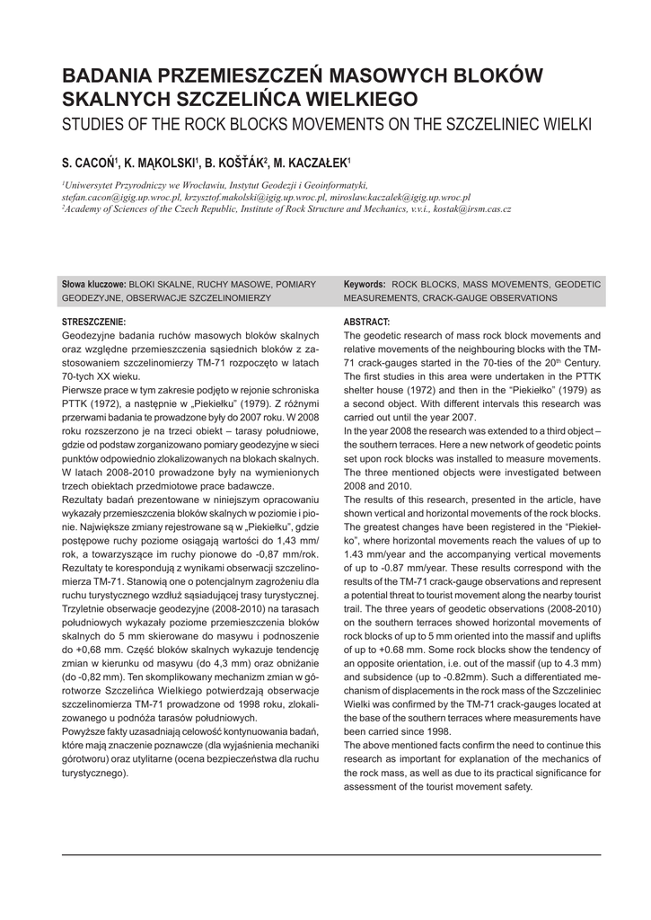 badania przemieszczeń masowych bloków skalnych szczelińca