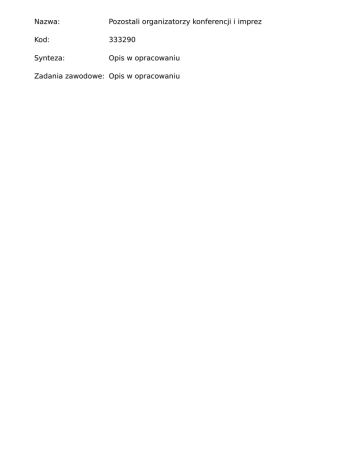 Nazwa: Pozostali organizatorzy konferencji i imprez Kod: 333290 Synteza: Opis w opracowaniu Zadania zawodowe: Opis w opracowaniu