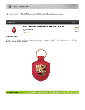 Sklep / Brelok na klucze z herbem Porsche, skórzany, czerwony Dane produktu Cena Brelok na klucze z herbem Porsche, skórzany, czerwony Nr: WAP0500920E Rok: Stan: nowy 17,58 € rabat 0% 17,58 € 14,29 € Szczegółowy opis Brelok na klucze z herbem Porsche, skórzany, czerwony. Klasyczny breloczek z herbem Porsche. Herb na skórzanej podkładce. Wymiary: 8.5 x 4 cm Kolor: czerwony masz pytanie? 1 Prosimy o kontakt z opiekunem tego produktu: Tomasz Pluskota [email protected] 2