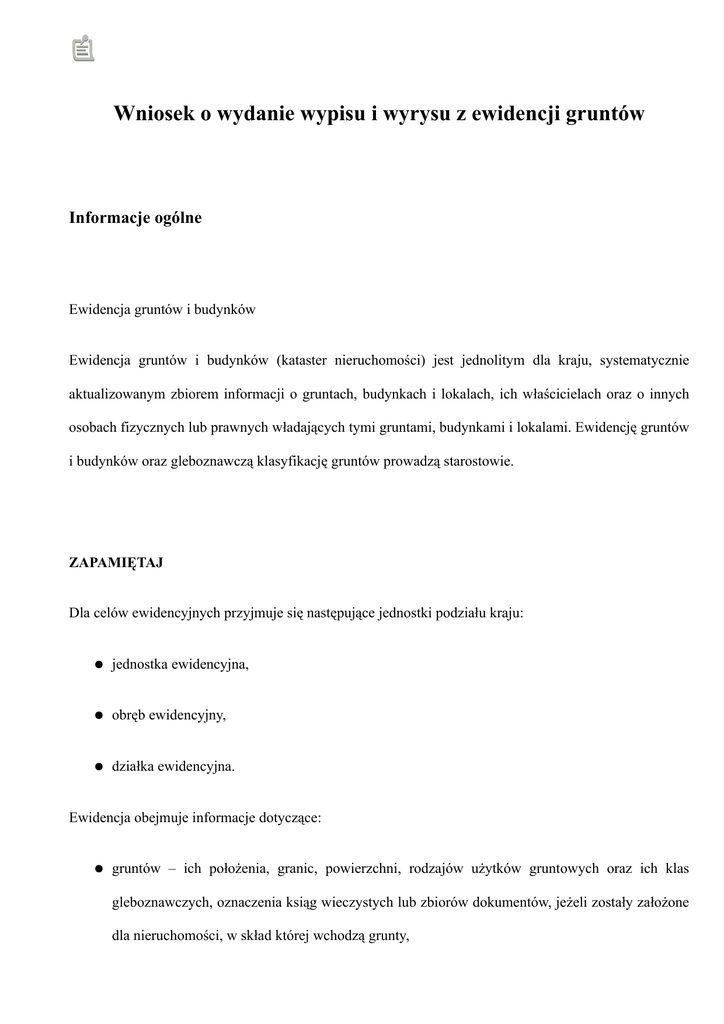 Wniosek o wydanie wypisu i wyrysu z ewidencji gruntów