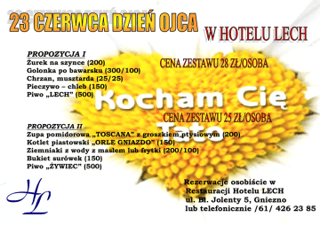 PROPOZYCJA I Rezerwacje osobiście w Restauracji Hotelu LECH
