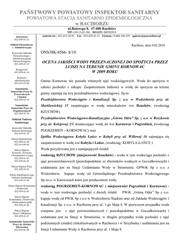 ocena roczna Kornowac 2009 - Powiatowa Stacja Sanitarno