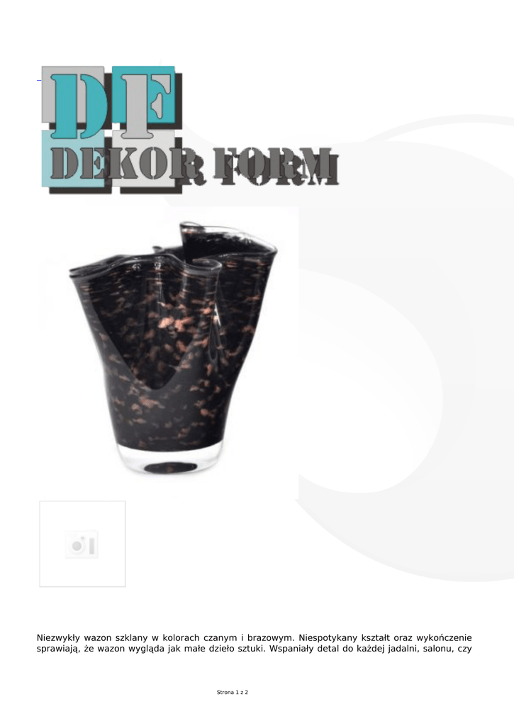 Niezwykły wazon szklany w kolorach czanym i brazowym. Niespotykany kształt oraz wykończenie sprawiają, że wazon wygląda jak małe dzieło sztuki. Wspaniały detal do każdej jadalni, salonu, czy Strona 1 z 2 sypialni. Nowoczesny, zwiewny kształt będzie przyciągał uwagę i wzbudzał zachwyt gości. Wzór jak na zdjęciu kolor czarno- brazowy Wymiary wysokość 16cm Materiał szkło kolorowe Strona 2 z 2