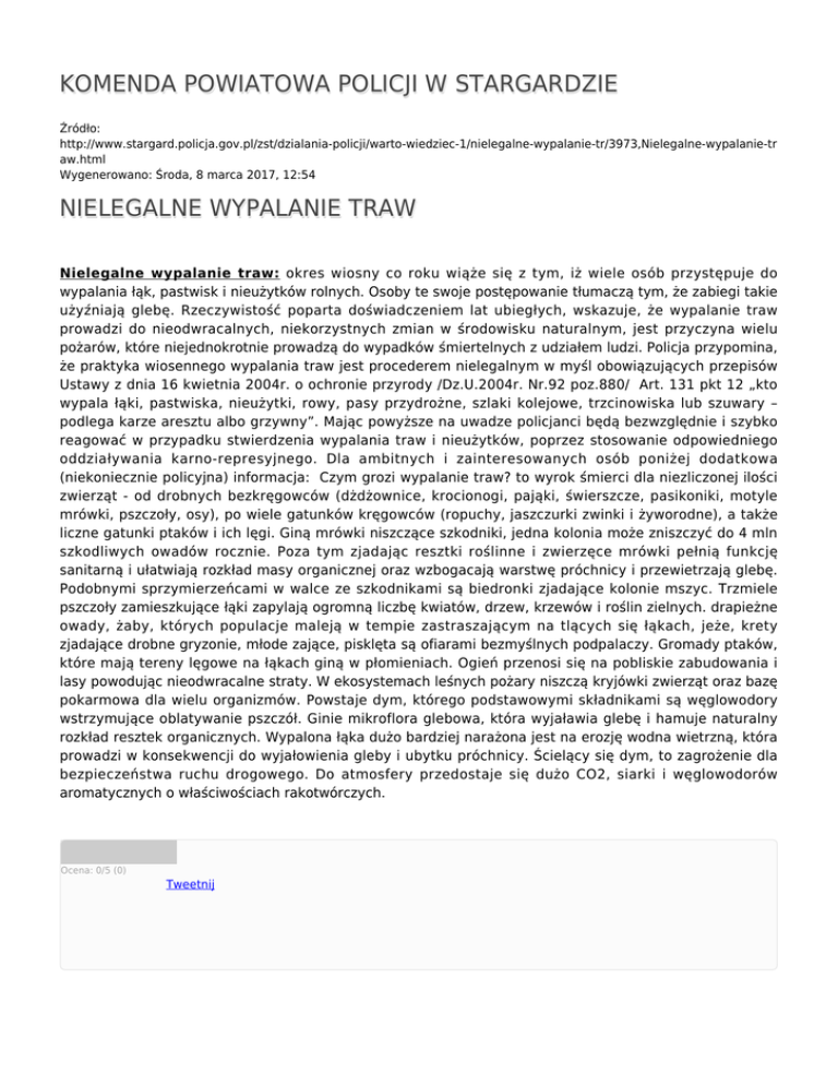 komenda powiatowa policji w stargardzie nielegalne wypalanie traw
