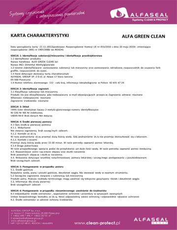 KARTA CHARAKTERYSTYKI ALFA GREEN CLEAN