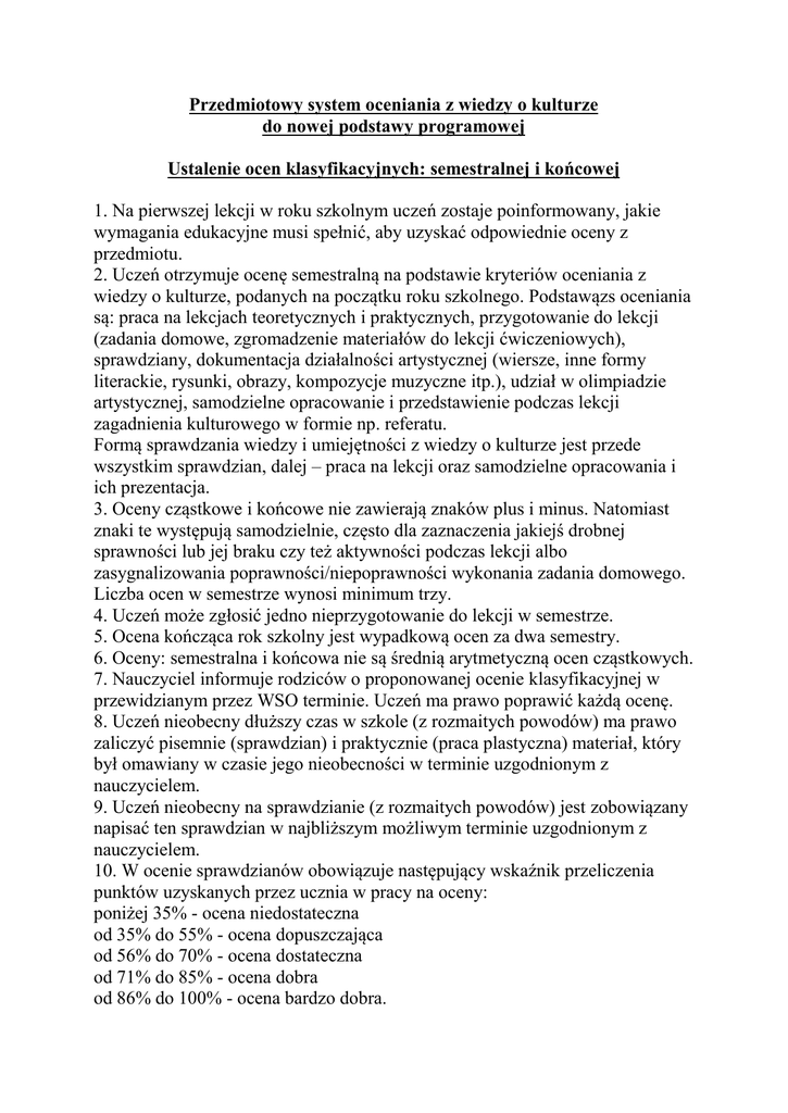 Przedmiotowy system oceniania z wiedzy o kulturze