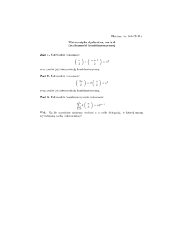 Matematyka dyskretna, seria 6 (zto»samo±ci kombinatoryczne)