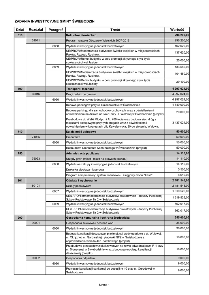 Dział Paragraf Treść ZADANIA INWESTYCYJNE GMINY