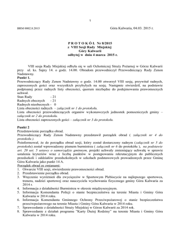 Góra Kalwaria, 04.03. 2015 r. P R O T O K Ó Ł Nr 8/2015 z VIII Sesji