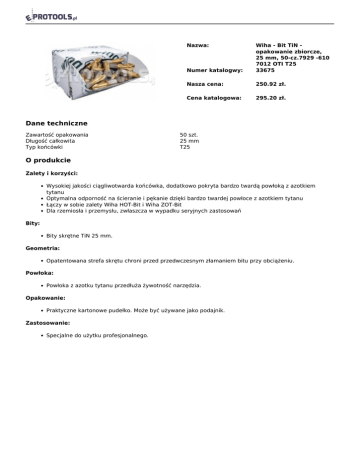Nazwa: Numer katalogwy: Wiha - Bit TiN opakowanie zbiorcze, 25 mm, 50-cz.7929 -610 7012 OTI T25 33675 Nasza cena: 250.92 zł. Cena katalogowa: 295.20 zł. Dane techniczne Zawartość opakowania Długość całkowita Typ końcówki 50 szt. 25 mm T25 O produkcie Zalety i korzyści: Wysokiej jakości ciągliwotwarda końcówka, dodatkowo pokryta bardzo twardą powłoką z azotkiem tytanu Optymalna odporność na ścieranie i pękanie dzięki bardzo twardej powłoce z azotkiem tytanu Łączy w sobie zalety Wiha HOT-Bit i Wiha ZOT-Bit Dla rzemiosła i przemysłu, zwłaszcza w wypadku seryjnych zastosowań Bity: Bity skrętne TiN 25 mm. Geometria: Opatentowana strefa skrętu chroni przed przedwczesnym złamaniem bitu przy obciążeniu. Powłoka: Powłoka z azotku tytanu przedłuża żywotność narzędzia. Opakowanie: Praktyczne kartonowe pudełko. Może być używane jako podajnik. Zastosowanie: Specjalne do użytku profesjonalnego. Powered by TCPDF (www.tcpdf.org)