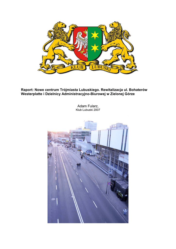 Raport: Nowe centrum Trójmiasta Lubuskiego. Rewitalizacja ul. Bohaterów Westerplatte i Dzielnicy Administracyjno-Biurowej w Zielonej Górze Adam Fularz, Klub Lubuski 2007 Przechadzka główna ulica Zielonej Góry: ul. Bohaterów Westerplatte, wrzuca nas w małomiasteczkową atmosferę 30-tysięcznego miasta jakim Zielona Góra pozostała w swym centrum ominiętym przez procesy urbanizacyjne w okresie absurdów gospodarki planowej. Główna ulica handlowa Zielonej Góry w niczym nie przypomina serca 200-tysięcznej aglomeracji, jaka winna tworzyć. Razi azjatycką estetyką, podupadłymi budynkami administracyjnymi w rodzaju Centrum Biznesu, czy odpychającą fasadą dawnych Domów Towarowych „Centrum” dziś mieszczących lumpeksy. Centrum Zielonej Góry jest dalece nieestetyczną mieszanką inicjatywy sektora prywatnego z resztkami własności państwowej, której efektem jest odstraszający inwestorów i zwiedzających to miasto wygląd jego gospodarczego centrum. 1. Tło Zielona Góra jest miastem spauperyzowanym po upadku większości zakładów przemysłowych w wyniku transformacji ustrojowej. Na te procesy dodatkowo nałoŜyła się migracja zarobkowa szacowana przez autora na około połowy do 2/3 młodszych mieszkańców miasta. Zielona Góra jest więc miastem starzejącym się, w lokalnych czasopismach zauwaŜa się z przekąsem Ŝe jest to miasto starzejącej się populacji, miasto „emerytów i rencistów”. W ostatnim okresie praktycznie nie ma miesiąca bez zamknięcia kolejnego klubu dla młodzieŜy, a oferta kulturalna dla tych grup wiekowych kurczy się w zastraszającym tempie. Miasto jest obecnie jedynym polskim miastem uniwersyteckim bez klubu studenckiego, a Ŝycie studenckie praktycznie w nim nie istnieje w porównaniu z innymi, często znacznie mniejszymi ośrodkami. Emigrują całe grupy młodzieŜy z róŜnych środowisk, bowiem jedna osoba z danej grupy ściąga do inny miast następnych ze swojej peer group. Proces ten przypomina podobne procesy demograficzne w RFN. 1.1. Niepewność danych demograficznych Ile naprawdę wynosi liczba mieszkańców miasta, trudno dociec z uwagi na deklaratywny charakter tych danych. Osoba zameldowana na pobyt czasowy lub stały w tym mieście moŜe od lat mieszkać za granicą. Mało reprezentatywne dane na samplu mieszkańców jednej z ulic pokazują iŜ wyjechała ponad połowa osób w wieku 24- 30 lat. Konieczne są dokładniejsze badania tego procesu. JednakŜe nie ulega wątpliwości iŜ miasto na całej długości przegrało w konkurencji z innymi miastami w wyścigu o kapitał ludzki i finansowy. Teoretycznie jednak miasto „na papierze” liczy blisko 120 tys. mieszkańców, a wraz z Nową Solą i Sulechowem tworzy 200-tysięczną aglomerację. 1.2. Zielona Góra- miasto rumuńskiej estetyki? Warto rozpocząć debatę nad estetyką centrum miasta. W opinii autora raportu, obecnie mamy do czynienia z sytuacją w której wizyta zagranicznego inwestora przyzwyczajonego do estetyki miast zachodnioeuropejskich czy wschodnioazjatyckich w centrum naszego miasta z duŜym prawdopodobieństwem zniechęci go do inwestowania w mieście którego władze preferują estetykę nieuporządkowaną typową dla gorszej części krajów III świata. Centrum miasta to setki chaotycznie rozlokowanych reklam, zdewastowane budynki nadające się jedynie do rozbiórki, nierównomierna zabudowa- parterowe pawilony obok wielopiętrowych galerii handlowych. Taki obraz z reguły przedstawiają miasta Rumunii, ale nie Europy Zachodniej. 2 2. Rewitalizacja ul. Bohaterów Westerplatte i Dzielnicy Administracyjno-Biurowej w Zielonej Górze 3 Fot. Główna ulica miasta to chodniki sprzed kilkunastu lat, zdewastowana zieleń miejska, oraz lokale komunalne zamiast potencjalnych biur. 4 2.1. PoraŜka władz miasta Władze miasta odniosły druzgoczącą poraŜkę nawet w sprawach priorytetowychzapewnienia naleŜytej estetyki wokół siedzib jedynych firm inwestujących w Zielonej Górze oraz posiadających tutaj biurowce. Od lat otoczeniem jedynego zielonogórskiego biurowca z prawdziwego zdarzenia jest pokryta nieudolnym graffiti ruina resztek dawnych schodów. Dodatkowo na wprost wyjścia z biurowca umieszczono śmietniki (widoczne na jednym ze zdjęć). Za dopuszczenie do takiego wykroczenia odpowiedzialność (nawet zwolnienie dyscyplinarne) powinien ponieść architekt miejski, mający prawo nakładania sankcji i wysokich kar na osoby niszczące ład estetyczny miasta, ale z niego niemal nie korzystający. Architekt miejski nie zabiera Ŝadnego głosu w publicznych debatach, od lat nie jest znane jego stanowisko w kluczowych sprawach takich jak wycinka lasów okalających miasto etc. Jest to osoba nieobecna w dyskursie publicznym miasta, co sugeruje iŜ nie ma ona wiele do zakomunikowania. Co więcej, ocena dokonań tej osoby sugeruje konieczność powołania osobnej komisji do oceny jej dokonań. 5 2.2. Typowy zakres zadań architekta miejskiego Architekt miejski winien metodą negocjacji osiągać kompromis z inwestorami mający na celu stałą poprawę estetyki miasta. Winien dbać szczególnie o estetykę centrum miasta, a takŜe o odpowiednie planowanie długofalowego rozwoju miasta, posiłkując się w tym celu ekspertyzami specjalistów i obficie korzystając z know-how zewnętrznych specjalistów. To winą architekta miejskiego jest brak terenów inwestycyjnych, oraz brak jakichkolwiek planów i scenariuszy na tą okoliczność. W poprawnie zarządzanym mieście tego typu sytuacja byłaby nie do pomyślenia, a o całej sytuacji opinia publiczna zostałaby poinformowana odpowiednio wcześnie by znaleźć antidota. Co więcej, architekt miejska ma najwyraźniej problemy ze stwierdzeniem rzeczy oczywistych, takich jak przekształcenie się znacznej części blokowisk na terenie miasta w slumsy. Nie mogąc zauwaŜyć tej przemiany, oczywistej dla osób postronnych (związanej z dopuszczeniem do róŜnorodnej kolorystycznie i materiałowo zabu