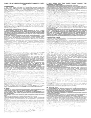 OGÓLNE WARUNKI SPRZEDAŻY ZAKŁADU MECHANIKI MASZYN BORKOWSCY SPÓŁKA JAWNA I. Postanowienia ogólne 1. Ogólne Warunki Sprzedaży (zwane dalej: „OWS”) określają zasady zawierania i realizacji umów sprzedaży towarów i usług oferowanych przez Zakład Mechaniki Maszyn Borkowscy Spółka Jawna z siedzibą we Wrocławiu, ul. Otyńska 6, 54-426 Wrocław, wpisaną przez Sąd Rejonowy dla Wrocławia – Fabrycznej we Wrocławiu, VI Wydział Gospodarczy, do rejestru przedsiębiorców w Krajowym Rejestrze Sądowym pod nr KRS: 0000535204, NIP: 8942700977, REGON: 932713649 (zwaną dalej: „Spółka ZMM Borkowscy”). 2. Klientem („Klient”) w rozumieniu niniejszych OWS jest podmiot dokonujący zakupu towarów lub usług od Spółki ZMM Borkowscy w celach związanych z działalnością gospodarczą lub zawodową. OWS nie mają zastosowania w relacjach handlowych z Klientami będącymi konsumentami w rozumieniu przepisów Kodeksu cywilnego. 3. Klient i Spółka ZMM Borkowscy są w dalszej części OWS zwani łącznie „Stronami”. 4. Termin „Towar” oznacza produkty lub usługi, które Spółka ZMM Borkowscy będzie dostarczać Klientowi w ramach umowy z Klientem lub na podstawie zaakceptowanego zamówienia. 5. Wszelkie odstępstwa od niniejszych OWS mogą wynikać jedynie z treści porozumień, umów, zamówień wynegocjowanych indywidualnie pomiędzy Klientem i Spółką ZMM Borkowscy, zawartych pod rygorem nieważności na piśmie (w tym także poprzez e-mail lub faks), bądź z bezwzględnie obowiązujących przepisów prawa. 6. OWS podawane są do wiadomości Klientów poprzez ich publikację na stronie internetowej Spółki ZMM Borkowscy pod adresem www.zmmborkowscy.pl w taki sposób, że możliwe jest ich pobranie, przechowywanie i odtwarzanie w zwykłym toku czynności lub poprzez umieszczenie na odwrocie dokumentów handlowych, a w wypadkach korespondencji elektronicznej poprzez umieszczenie ich treści w załączniku do tej korespondencji. II. Katalogi, próbki i dokumenty odnoszące się do towaru 1. Informacje podane w katalogach, folderach, serwisach internetowych, na zdjęciach i rysunkach technicznych oraz innych nośnikach reklamy mają charakter wyłącznie informacyjny i obowiązują Spółkę ZMM Borkowscy tylko wtedy, gdy zostaną pisemnie (w tym także poprzez e-mail lub faks) potwierdzone przez osoby upoważnione pod rygorem nieważności. Wzorce i próbki mają wyłącznie charakter materiałów poglądowych oraz wystawowych. 2. Spółka ZMM Borkowscy zastrzega sobie prawo do wycofania lub modyfikacji materiałów, o których mowa w ust. 1. w dowolnym terminie bez obowiązku informowania o zaistniałych zmianach. Przekazane materiały Klientowi są własnością Spółki ZMM Borkowscy. Kopiowanie, nanoszenie zmian w prezentowanych danych oraz wykorzystanie zmienionych danych bez zgody Spółki ZMM Borkowscy jest zabronione. 3. Spółka ZMM Borkowscy nie weryfikuje danych technicznych zawartych w atestach, certyfikatach i innych dokumentach producentów poświadczających jakość. Przekazywane dokumenty są każdorazowo jedynie informacją Spółki ZMM Borkowscy, że towar zgodnie z oświadczeniem producenta został wykonany zgodnie ze wskazanymi w dokumentach kryteriami. 4. Wydanie dokumentów, o których mowa w ust. 3 może nastąpić również poprzez wysłanie ich za pośrednictwem poczty e-mail w formie skanu. 5. Spółka ZMM Borkowscy nie ponosi odpowiedzialności za funkcjonowanie produktów wykonanych na podstawie projektów przedłożonych przez Klienta oraz nie ma obowiązku sprawdzenia gatunku i jakości materiału, z którego wykonano wyroby dostarczone przez Klienta. 6. Klient oświadcza, że przedłożone przez niego projekty, związane z nimi dokumenty i udzielone informacje nie naruszają praw osób trzecich. III. Zamówienia 1. Podstawą zawarcia umowy jest zamówienie Klienta złożone w odpowiedzi na ofertę Spółki ZMM Borkowscy. Zamówienie może być złożone osobiście w siedzibie Spółki ZMM Borkowscy, pisemnie za pośrednictwem listu poleconego na adres Spółki ZMM Borkowscy, faksem na numer 71 373 79 34, za pośrednictwem poczty e-mail na adres [email protected]. 2. Formularz zamówienia złożony przez Klienta powinien zawierać: imię i nazwisko/firmę Klienta oraz określenie jego formy prawnej, dane konieczne do wystawienia faktury, rodzaj i ilość towarów, specyfikację towarów, miejsce dostarczenia towarów, w tym dokładny adres oraz imię nazwisko osoby upoważnionej do odbioru towarów, termin dostarczenia towarów, termin płatności. W przypadku zamówień specjalnych, formularz zamówienia złożony przez Klienta powinien nadto zawierać wszelkie informacje niezbędne do właściwego i terminowego wykonania zamówienia przez Spółkę ZMM Borkowscy. 3. Klient jest wyłącznie odpowiedzialny za to, by dane techniczne, jakość, ilość towaru, rodzaj usługi, określone w zamówieniu odpowiadały jego potrzebom. Spółka ZMM Borkowscy nie ponosi odpowiedzialności za skutki błędów popełnionych w treści zamówienia złożonego przez Klienta. Dane zawarte w zamówieniu przez Klienta Spółka ZMM Borkowscy sprawdza pod względem formalnym. 4. Spółka ZMM Borkowscy związana jest zamówieniem tylko wtedy, gdy potwierdzi go na piśmie (w tym także poprzez e-mail, faks). Brak niezwłocznej odpowiedzi na zamówienie Klienta, z którym Spółka ZMM Borkowscy pozostaje w stałych stosunkach gospodarczych, nie poczytuje się za przyjęcie zamówienia. Strony wyłączają wszelkie prawem przewidziane możliwości milczącego (dorozumianego) zawarcia umowy. 5. W przypadku jakiejkolwiek zmiany oferty lub wprowadzenia zastrzeżeń do niej w zamówieniu Klienta, umowa zawarta zostanie dopiero z momentem potwierdzenia przez Spółkę ZMM Borkowscy przyjęcia zamówienia ze zmianami czy zastrzeżeniami. Brak potwierdzenia takiego zamówienia jest jednoznaczny z tym, że umowa nie została zawarta. 6. W przypadku różnicy p