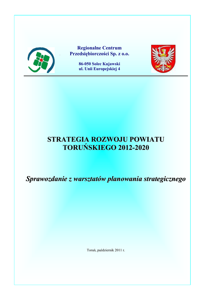 Regionalne Centrum Przedsiębiorczości Sp. z o.o. 86-050 Solec Kujawski ul. Unii Europejskiej 4 STRATEGIA ROZWOJU POWIATU TORUŃSKIEGO 2012-2020 Sprawozdanie z warsztatów planowania strategicznego Toruń, październik 2011 r. Raport z warsztatów planowania strategicznego Spis treści 1. Podstawowe informacje o Metodzie Aktywnego Planowania 3 Strategii 2. Uczestnicy warsztatów planowania 6 3. Analiza SWOT 9 4. Analiza problemów 12 5. Analiza celów 19 6. Przegląd planowania (mierniki) 28 7. Harmonogram działań 31 Regionalne Centrum Przedsiębiorczości Sp. z o.o. 2 Raport z warsztatów planowania strategicznego 1. PODSTAWOWE INFORMACJE O METODZIE Jedną z metod planowania strategicznego, stosowaną przez kraje Unii Europejskiej (UE) jest Metoda Aktywnego Planowania Strategii (MAPS). W języku niemieckim określana jako Ziel Orientiere Projekt – Plannung (ZOPP), natomiast w języku angielskim Goal Oriented Project Planning (GOPP). Istotą MAPS jest założenie, że informacja i wiedza potrzebna do opracowania strategii istnieje, ale poszczególne jej elementy są nieskoordynowane oraz nieuporządkowane, a ponadto rozproszone w różnych instytucjach, organizacjach i umysłach lokalnych ekspertów. We wszystkich etapach tej metody przestrzega się podstawowych jej zasad, jakimi są: sposób podejmowania decyzji i konsensus. Merytoryczną rolę w wypracowaniu strategii dla danej instytucji lub regionu odgrywają lokalni/regionalni liderzy, którzy są włączeni do zespołu planującego na podstawie ich: reprezentatywności, posiadanego doświadczenia, wiedzy. Skład osobowy zespołu ekspertów rekrutujących się spośród osób kluczowych dla obszaru, dla którego budowana jest strategia rozwoju wcale nie musi pokrywać się z podziałami formalnymi, uwzględnienie których jednak jest niezbędne. Wizualizacja działań (dyskusji, która odbywa się w formie pisemnej) nadaje całemu procesowi planowania charakter materialny i obrazujący: wkład członków grupy planującej (wyniki pracy grupy są rejestrowane na bieżąco) aktualny stan dyskusji udokumentowanie wyników. Warsztaty odbywają się na zasadzie „burzy mózgów” w grupie od 25 do 30 osób przedstawicieli wiodących grup danego środowiska. Całością dyskusji kieruje moderator, który jest osobą z zewnątrz. Rola moderatora polega głównie na: - kierowaniu dyskusją, - porządkowaniu i strukturyzacji wypowiedzi, - utrwalaniu wyników dyskusji. Dochodzenie do wyników przez zespół planowania strategicznego odbywa się na drodze konsensusu – tj. powszechnej zgody. Stąd też w wypadku nieuniknionych rozbieżności, uwzględnienie, których stanowi silną stronę metody MAPS, musi być zawarty konsensus – na taki a nie inny zapis – przez wszystkich członków zespołu planującego. Oznacza to, że osiąganie porozumienia metodą głosowania jest niewłaściwe dla tej metody. Przyjęcie zasady konsensusu jest istotne z kilku powodów: Regionalne Centrum Przedsiębiorczości Sp. z o.o. 3 Raport z warsztatów planowania strategicznego - reprezentanci grup społecznych pracujący nad rozwiązaniem określonego zbioru problemów nie mają charakteru elekcyjnego ani proporcjonalnego. Są to reprezentanci, liderzy z różnych sfer życia społeczno-gospodarczego, - podejmowanie decyzji na zasadzie konsensusu nie dzieli grupy na „wygranych” i „przegranych” (jak w przypadku głosowania), tym samym zmniejsza się ryzyko zablokowania realizacji decyzji przez osoby lub grupy „przegrane”, - jawność decyzji – wszystkie prace i spotkania są jawne, grupę planowania strategicznego traktuje się jako reprezentację szerokiej społeczności. Po zakończeniu każdego etapu planowania strategicznego członkowie grupy winni skonsultować w swoim środowisku wypracowany materiał. Główne zasady MAPS sama metoda wyznacza nie tylko sposób planowania, ale i reguluje sposób komunikacji między członkami zespołu planującego - udziela także wskazówek, co do warunków odbywania się warsztatów, a także zagospodarowania przestrzeni, w której one się odbywają, podstawową formą dyskusji jest planowanie w grupie metodą „burzy mózgów”, które pozwala na uzyskanie efektu synergii, wynikającego ze sumowania się w wartość dodatkową kompetencji poszczególnych członków grupy planującej, wizualizacja działań nadaje całemu procesowi planowania charakter materialny, podczas całego procesu planowania obowiązują reguły i zalecenia stosowane dla każdego kroku przewidzianego w harmonogramie warsztatu adresowanego dla odpowiednio zestawionej grupy planującej, kierowanej przez moderatora, wdrażanie strategii winno być wspierane o metodę MAPS, przy wykorzystaniu w najwyższym stopniu doświadczeń grupy planującej, zobrazowanych w wynikach uzyskanych podczas warsztatów planowania strategicznego. Metoda MAPS przewiduje następujące etapy planowania strategicznego: analiza problemów, analiza celów, przegląd planowania strategii (mierniki), harmonogram działań. Warsztaty planowania strategicznego poprzedzone są analizą SWOT, tj. oceną mocnych i słabych stron oraz szans i zagrożeń. Regionalne Centrum Przedsiębiorczości Sp. z o.o. 4 Raport z warsztatów planowania strategicznego 2. UCZESTNICY WARSZTATÓW PLANOWANIA STRATEGICZNEGO Lp. Nazwisko i imię 1. Bagiński Robert 2. Bober Kazimierz 3. Brzoska Janusz 4. 5. Bykowska Anna Drapiewski Zdzisław 6. Dygasiewicz Henryk 7. Fabisiak Dariusz 8. Gębski Mirosław 9. Gołembiewski Jerzy 10. 11. Graczyk Mirosław Gredecki Dominik 12. Gruszczyńska Mariola 13. Hajdas Jolanta 14. Iglewska Patrycja 15. Jabłońska – Drążela Danuta 16. Jankierska-Wojda Agnieszka 17. Janiaczyk – Dąbrowska Agnieszka 18. Kannenberg Sebastian 19. Kisielewska Barbara Miejsce pracy Starostwo Powiatowe w Toruniu Inspektor Urząd Gminy Chełmża Wicewójt Urząd Gminy Łubianka Gminny Ośrodek Pomocy Społecznej Kierownik Gminny Ośrodek Pomocy Społecznej w Ch