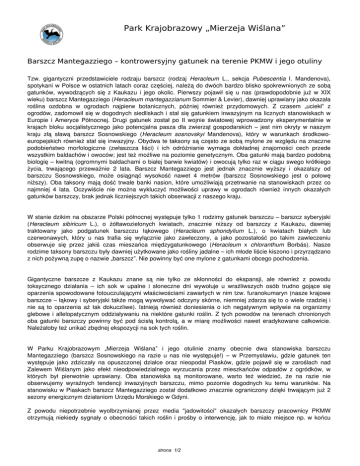 Park Krajobrazowy „Mierzeja Wiślana” Barszcz Mantegazziego – kontrowersyjny gatunek na terenie PKMW i jego otuliny Tzw. gigantyczni przedstawiciele rodzaju barszcz (rodzaj Heracleum L., sekcja Pubescentia I. Mandenova), spotykani w Polsce w ostatnich latach coraz częściej, należą do dwóch bardzo blisko spokrewnionych ze sobą gatunków, wywodzących się z Kaukazu i jego okolic. Pierwszy pojawił się u nas (prawdopodobnie już w XIX wieku) barszcz Mantegazziego (Heracleum mantegazzianum Sommier & Levier), dawniej uprawiany jako okazała roślina ozdobna w ogrodach najpierw botanicznych, później również przydomowych. Z czasem „uciekł” z ogrodów, zadomowił się w dogodnych siedliskach i stał się gatunkiem inwazyjnym na licznych stanowiskach w Europie i Ameryce Północnej. Drugi gatunek został po II wojnie światowej wprowadzony eksperymentalnie w krajach bloku socjalistycznego jako potencjalna pasza dla zwierząt gospodarskich – jest nim okryty w naszym kraju złą sławą barszcz Sosnowskiego (Heracleum sosnovskyi Mandenova), który w warunkach środkowoeuropejskich również stał się inwazyjny. Obydwa te taksony są często ze sobą mylone ze względu na znaczne podobieństwo morfologiczne (zwłaszcza liści) i ich odróżnianie wymaga dokładnej znajomości cech przede wszystkim baldachów i owoców; jest też możliwe na poziomie genetycznym. Oba gatunki mają bardzo podobną biologię – kwitną (ogromnymi baldachami o białej barwie kwiatów) i owocują tylko raz w ciągu swego krótkiego życia, trwającego przeważnie 2 lata. Barszcz Mantegazziego jest jednak znacznie wyższy i okazalszy od barszczu Sosnowskiego, może osiągnąć wysokość nawet 4 metrów (barszcz Sosnowskiego jest o połowę niższy). Oba taksony mają dość trwałe banki nasion, które umożliwiają przetrwanie na stanowiskach przez co najmniej 4 lata. Oczywiście nie można wykluczyć możliwości uprawy w ogrodach również innych okazałych gatunków barszczy, brak jednak liczniejszych takich obserwacji z naszego kraju. W stanie dzikim na obszarze Polski północnej występuje tylko 1 rodzimy gatunek barszczu – barszcz syberyjski (Heracleum sibiricum L.), o żółtawozielonych kwiatach, znacznie niższy od barszczy z Kaukazu, dawniej traktowany jako podgatunek barszczu łąkowego (Heracleum sphondylium L.), o kwiatach białych lub czerwonawych, który u nas trafia się wyłącznie jako zawleczony, a jako pozostałość po takim zawleczeniu obserwuje się przez jakiś czas mieszańca międzygatunkowego (Heracleum x chloranthum Borbás). Nasze rodzime taksony barszczu były dawniej użytkowane jako rośliny jadalne – ich młode liście kiszono i przyrządzano z nich pożywną zupę o nazwie „barszcz”. Nie powinny być one mylone z gatunkami obcego pochodzenia. Gigantyczne barszcze z Kaukazu znane są nie tylko ze skłonności do ekspansji, ale również z powodu toksycznego działania – ich sok w upalne i słoneczne dni wywołuje u wrażliwszych osób trudno gojące się oparzenia spowodowane fotouczulającymi właściwościami zawartych w nim tzw. furanokumaryn (nasze krajowe barszcze – łąkowy i syberyjski także mogą wywoływać odczyny skórne, niemniej zdarza się to o wiele rzadziej i nie są to oparzenia aż tak dokuczliwe). Istnieją również doniesienia o ich negatywnym wpływie na organizmy glebowe i allelopatycznym oddziaływaniu na niektóre gatunki roślin. Z tych powodów na terenach chronionych oba gatunki barszczy powinny być pod ścisłą kontrolą, a w miarę możliwości nawet eradykowane całkowicie. Należałoby też unikać zbędnej ekspozycji na sok tych roślin. W Parku Krajobrazowym „Mierzeja Wiślana” i jego otulinie znamy obecnie dwa stanowiska barszczu Mantegazziego (barszcz Sosnowskiego na razie u nas nie występuje!) – w Przemysławiu, gdzie gatunek ten występuje jako zdziczały na opuszczonej działce oraz nieopodal Piasków, gdzie pojawił się w zaroślach nad Zalewem Wiślanym jako efekt nieodpowiedzialnego wyrzucania przez mieszkańców odpadów z ogródków, w których był pierwotnie uprawiany. Oba stanowiska są monitorowane, warto też wiedzieć, że na razie nie obserwujemy wyraźnych tendencji inwazyjnych barszczu, mimo pozornie dogodnych ku temu warunków. Na stanowisku w Piaskach barszcz Mantegazziego został dodatkowo znacznie ograniczony dzięki trwającym już 2 sezony energicznym działaniom Urzędu Morskiego w Gdyni. Z powodu niepotrzebnie wyolbrzymianej przez media "jadowitości" okazałych barszczy pracownicy PKMW otrzymują niekiedy sygnały o obecności takich roślin i prośby o interwencję, jak to miało miejsce np. w końcu strona 1/2 lipca, gdy wpłynęło do nas zgłoszenie w sprawie domniemanego występowania barszczu Sosnowskiego od zaniepokojonych mieszkańców Kątów Rybackich. Jednak rekonesans w terenie ujawnił obecność jedynie okazałych osobników naszego pospolitego na Mierzei i Żuławach barszczu syberyjskiego oraz pasternaka zwyczajnego (Pastinaca sativa L.) o żółtych kwiatach i mocno bruzdowanych łodygach, również bardzo u nas rozpowszechnionego. Warto więc przyjrzeć się uważniej naszym fotografiom, aby niepotrzebnie nie bać się każdej rośliny, mającej w nazwie ""barszcz", lub do niego podobnej. W przypadku zauważenia okazów gigantycznego barszczu poza wymienionymi stanowiskami bardzo prosimy o kontakt osobisty, telefoniczny lub mailowy z podaniem dokładnej lokalizacji roślin. (S.N.) strona 2/2 Powered by TCPDF (www.tcpdf.org)