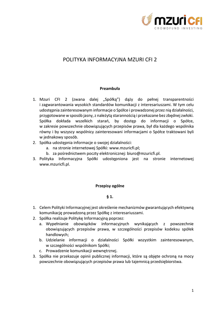 Polityka Informacyjna Mzuri CFI 2