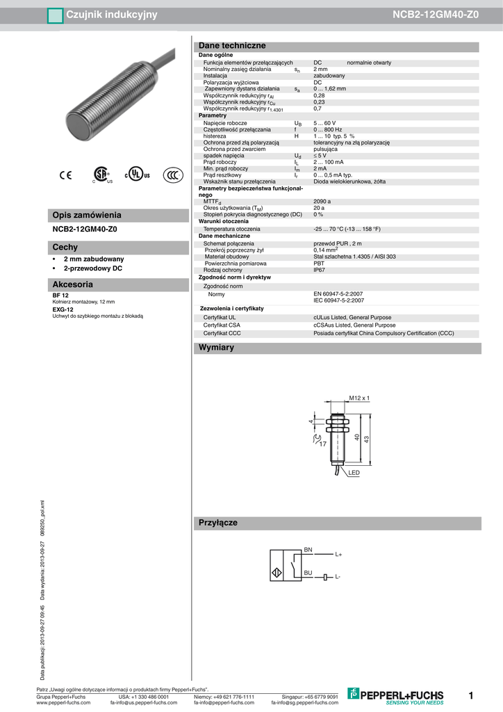 1 Czujnik indukcyjny NCB2 12GM40 Z0